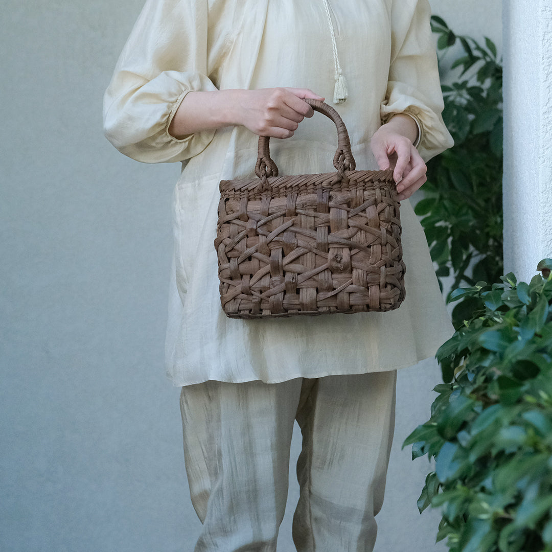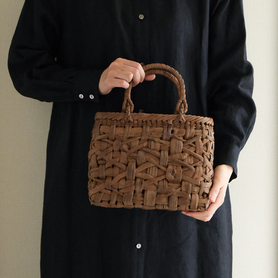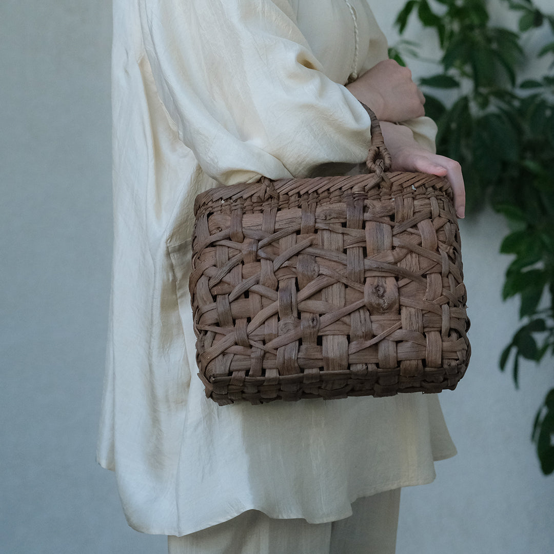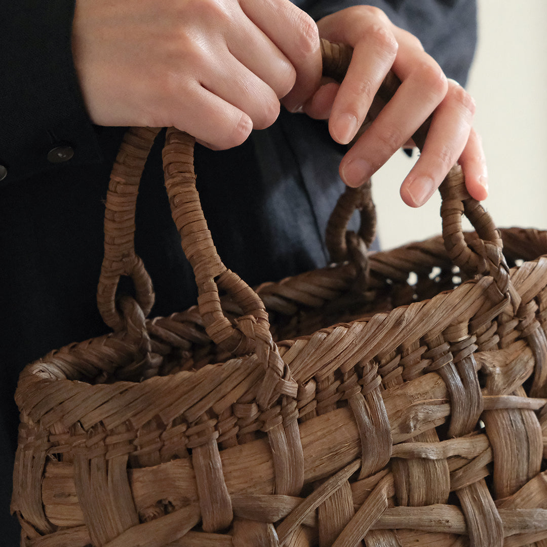 まるでレザーを編んだような雰囲気の山ぶどうかご。見た目以上にきめが細かく、さらりとした触り心地です。