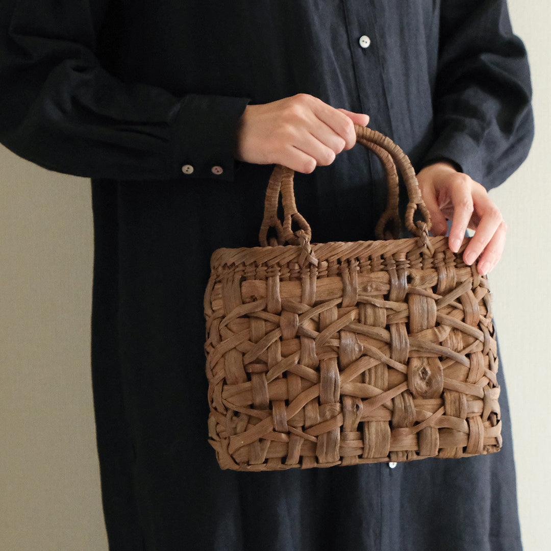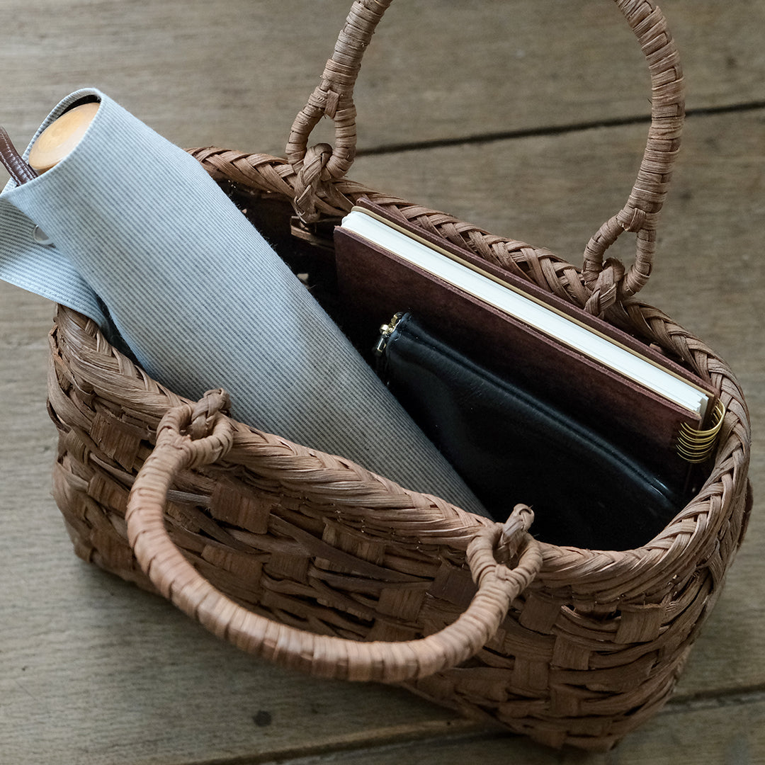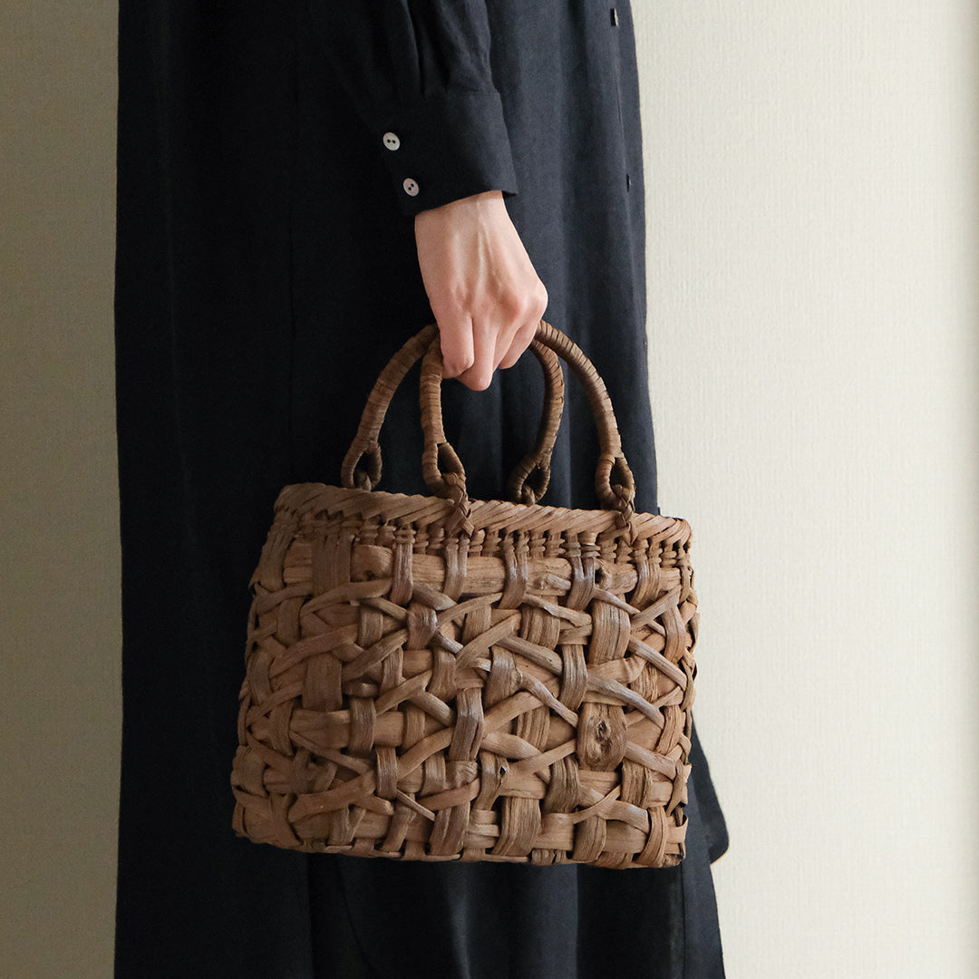 まるでレザーを編んだような雰囲気の山ぶどうかご。見た目以上にきめが細かく、さらりとした触り心地です。
