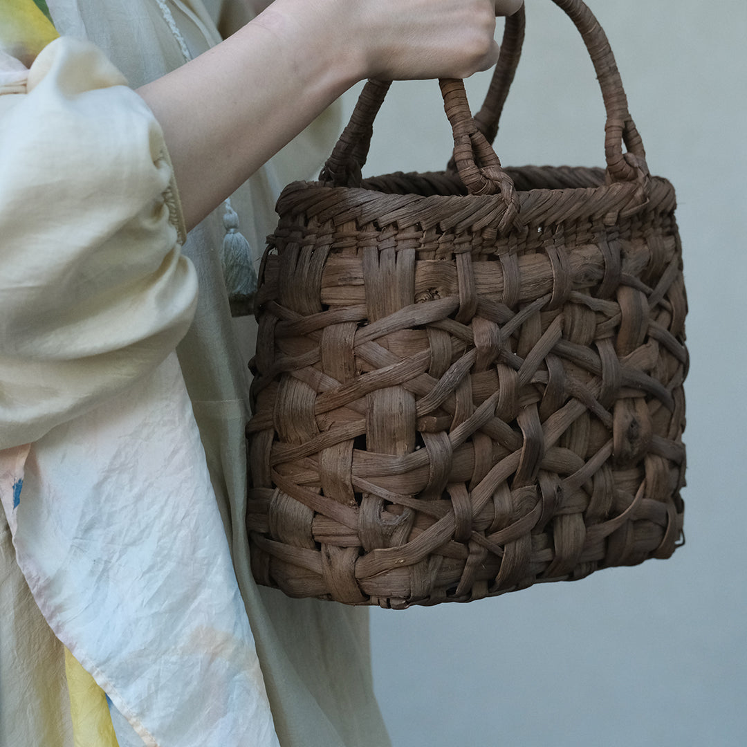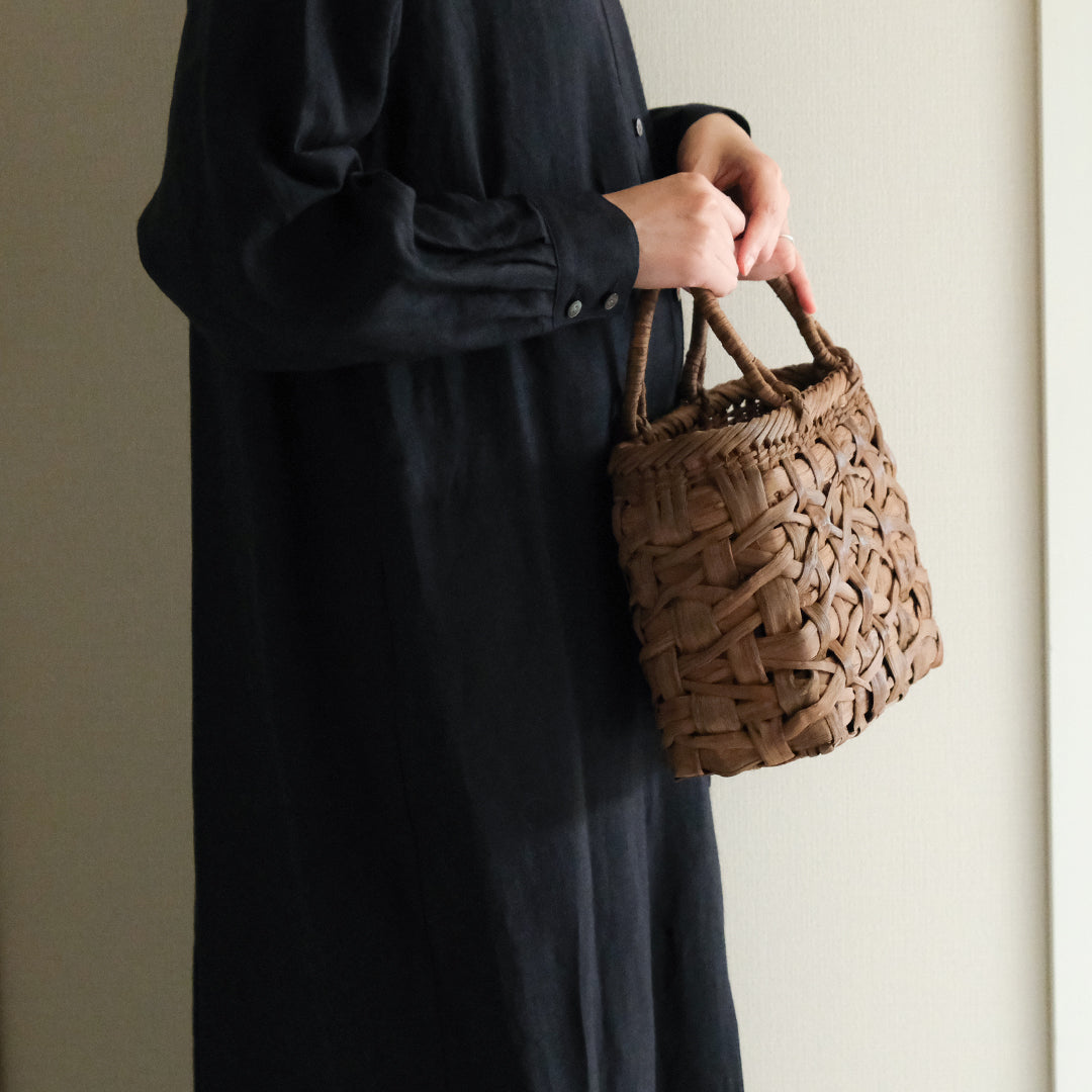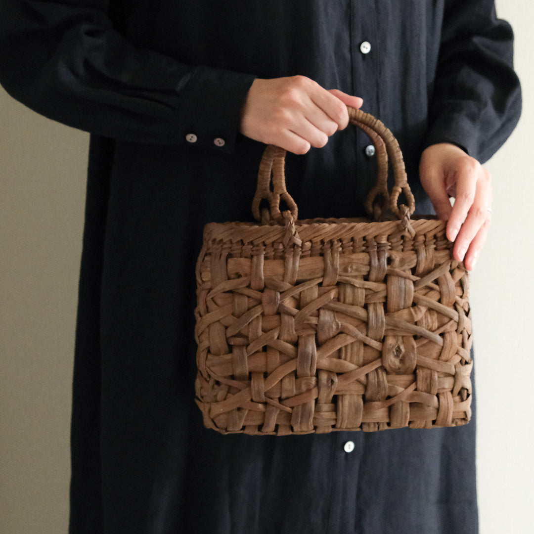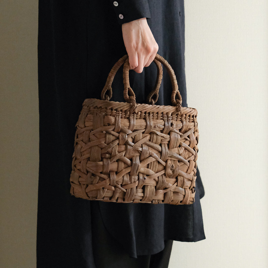 まるでレザーを編んだような雰囲気の山ぶどうかご。見た目以上にきめが細かく、さらりとした触り心地です。