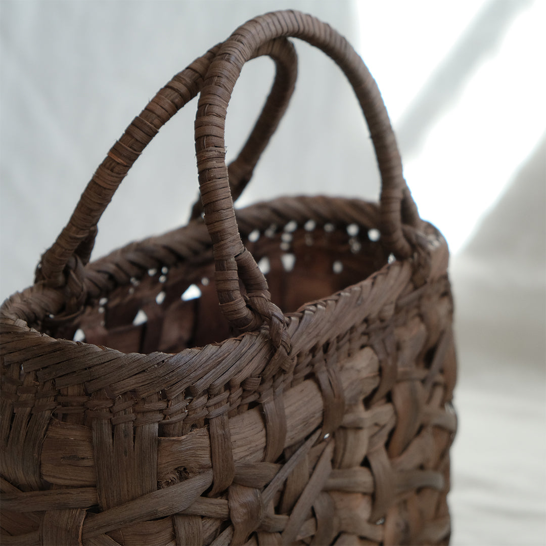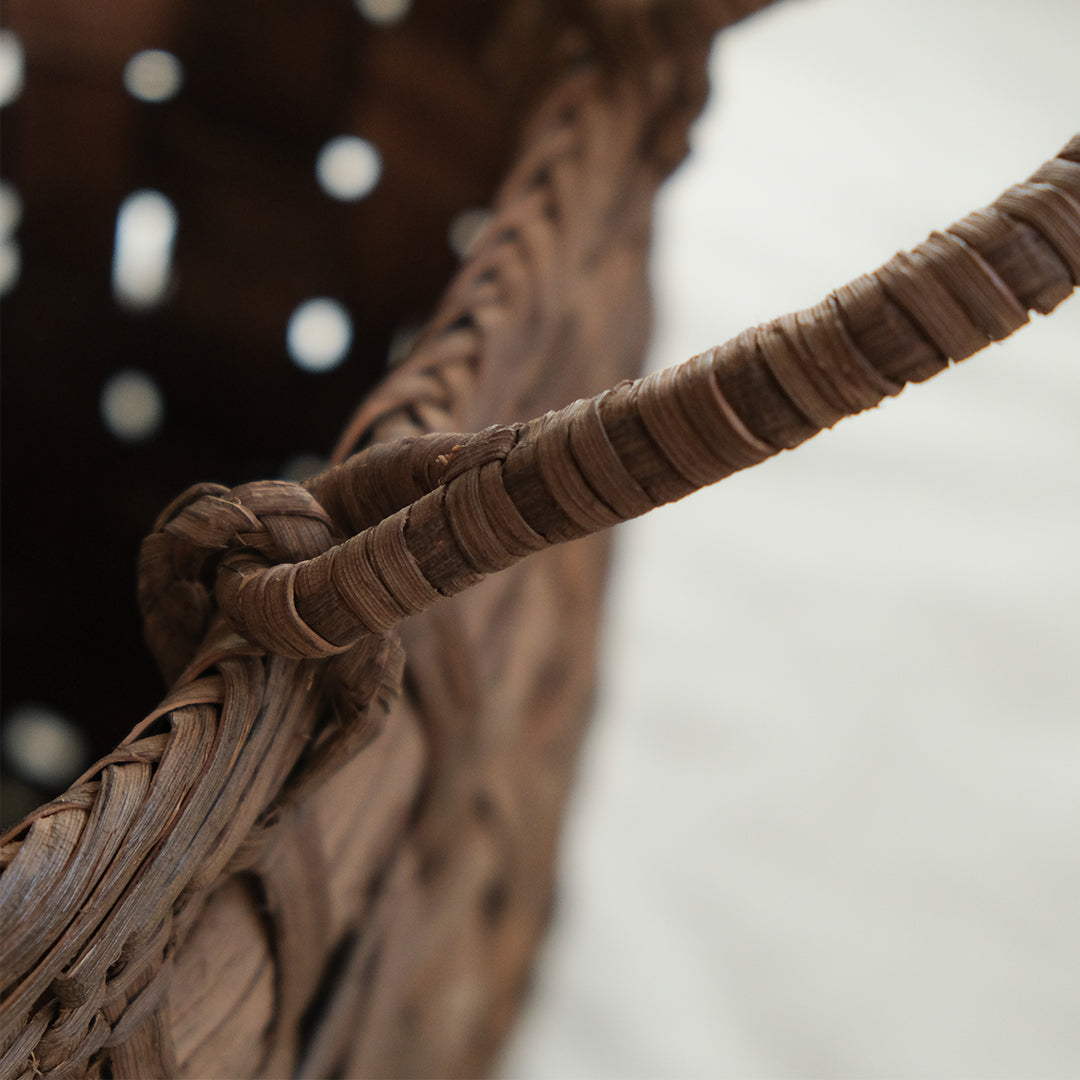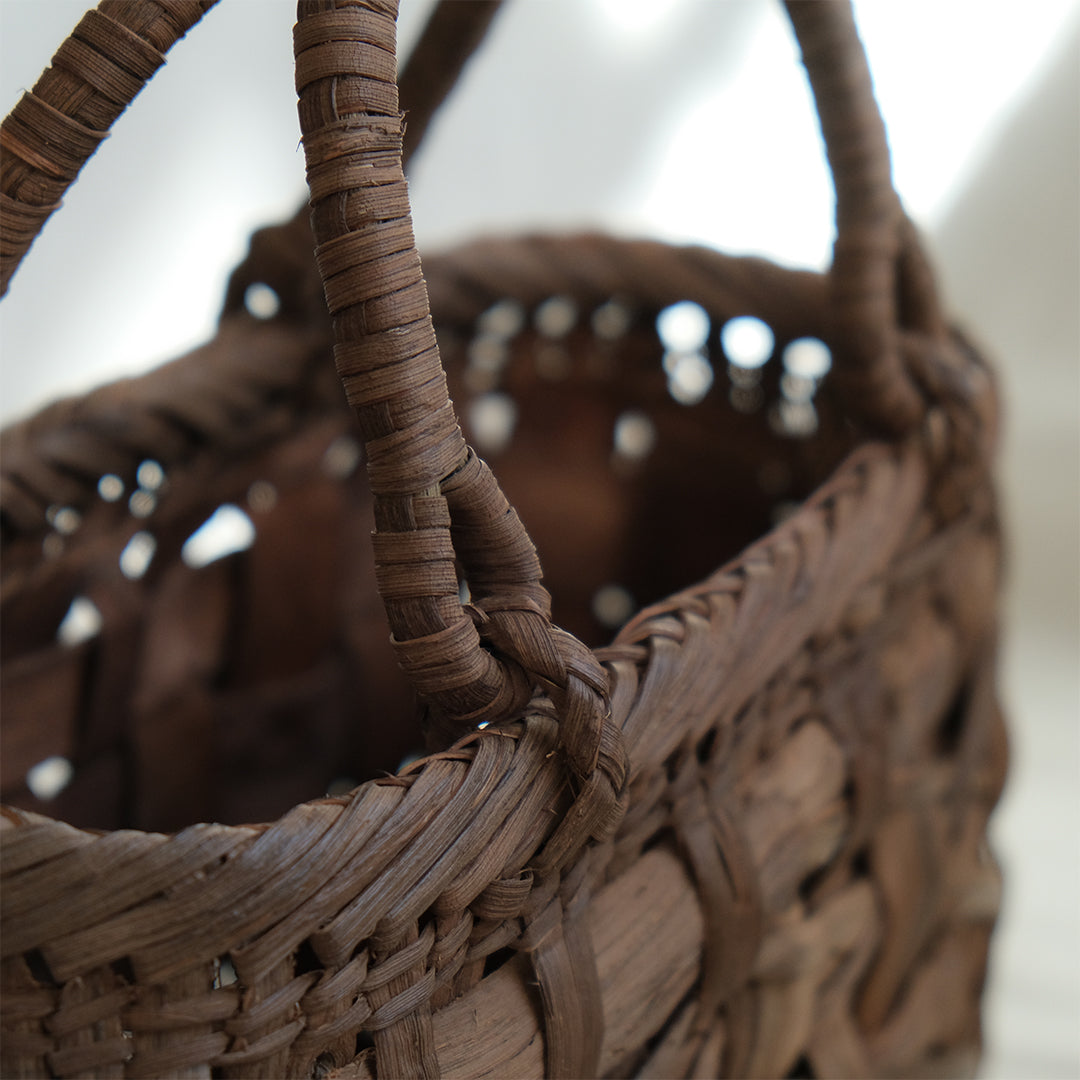 あけびかご以上に大きく変化する山ぶどうかご。時間が経つほどに色合いはこっくりと深く、手触りはしっとりとなめらかになっていく、まさに育てるかごです。
