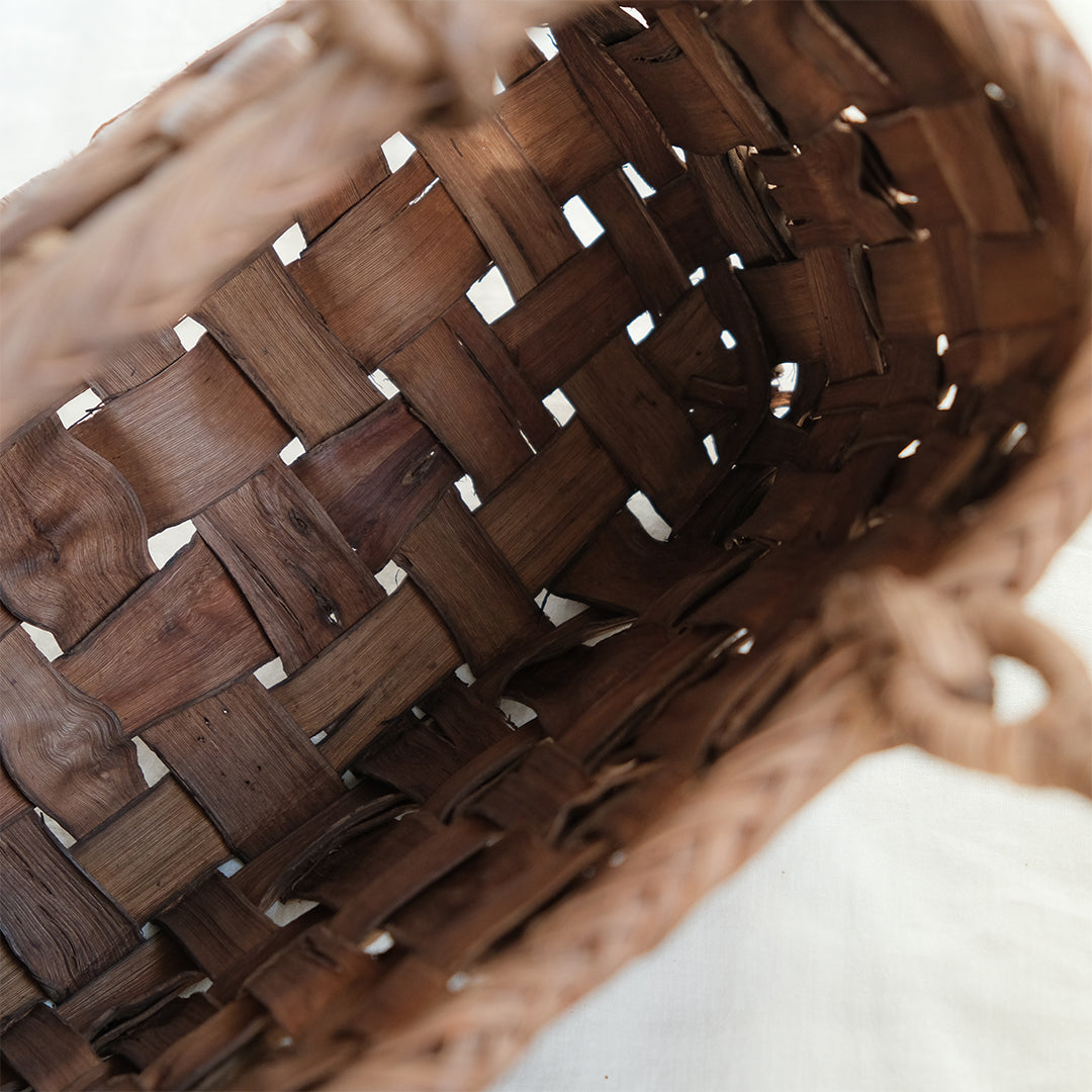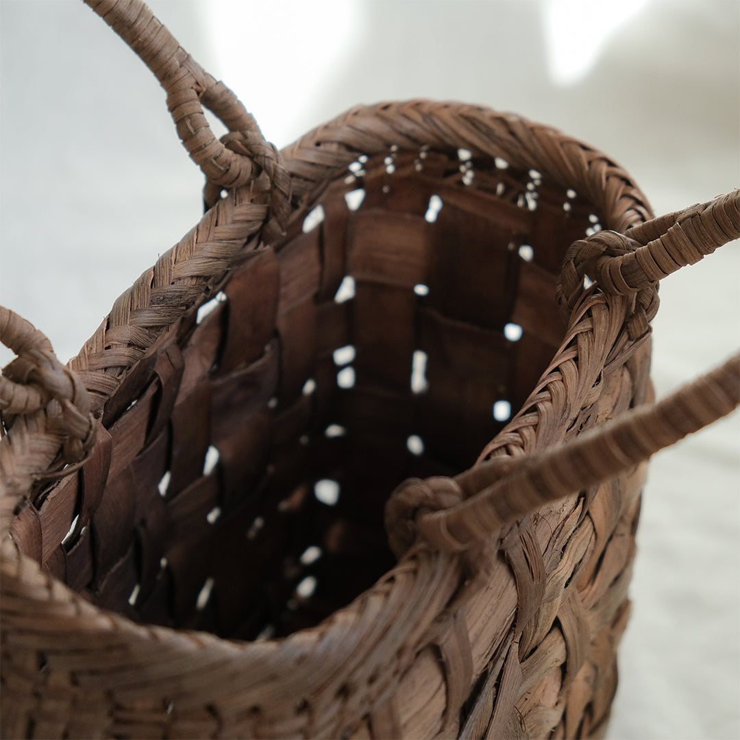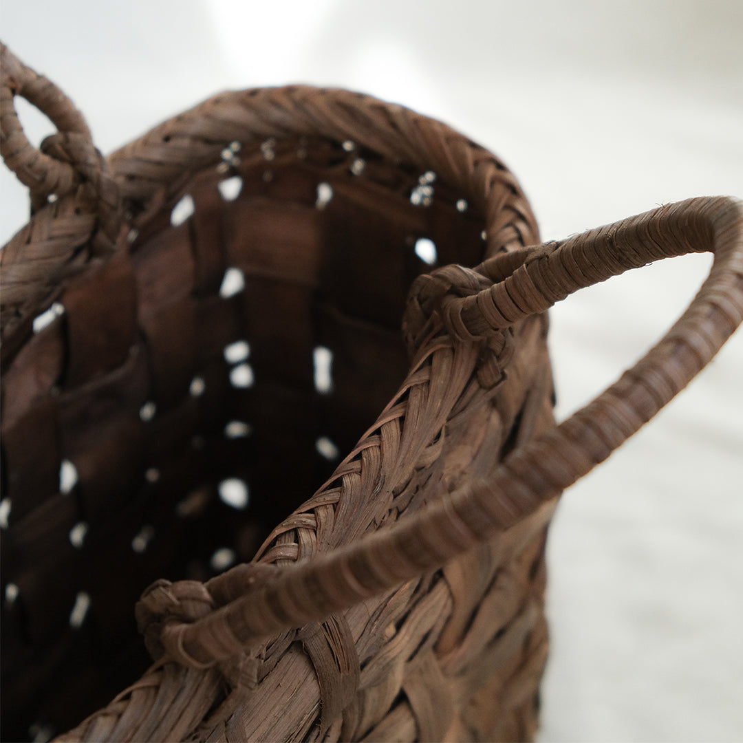 あけびかご以上に大きく変化する山ぶどうかご。時間が経つほどに色合いはこっくりと深く、手触りはしっとりとなめらかになっていく、まさに育てるかごです。