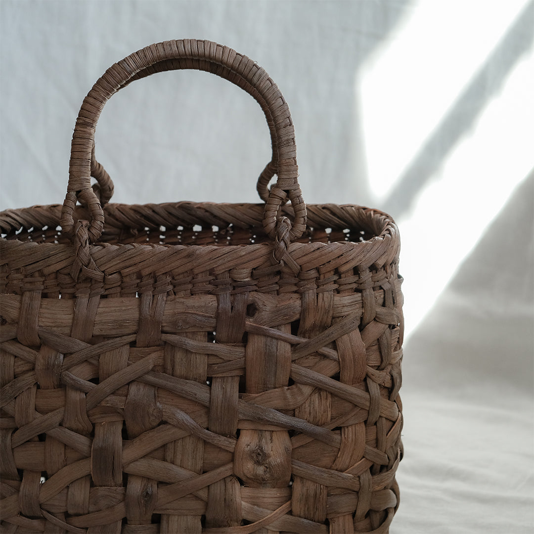 力強く精密に編み込んだ素朴な山ぶどうかご