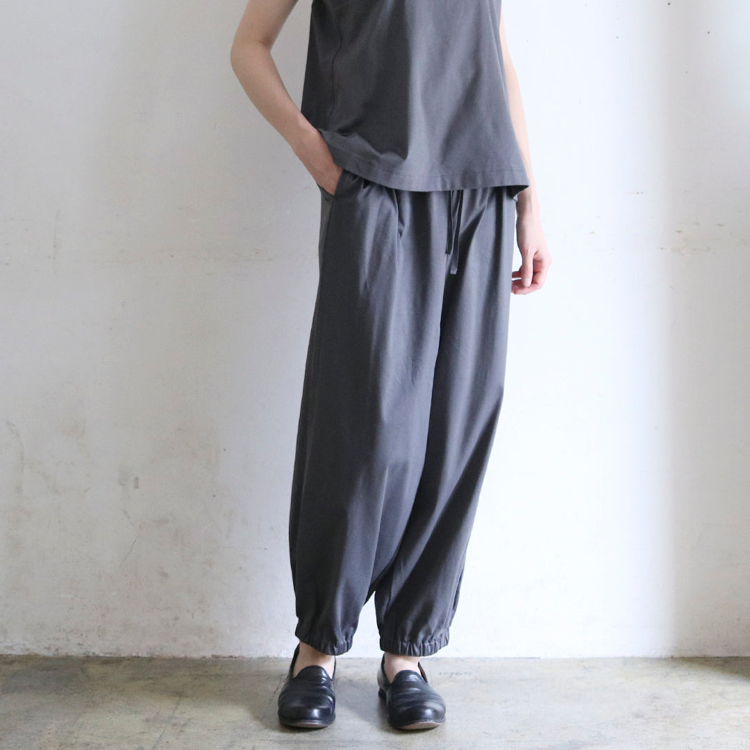 気持ちのよい履き心地の、ウエストゴムのパンツ。コットンローン生地に加えて、こちらはカットソー生地でつくられたシリーズ。