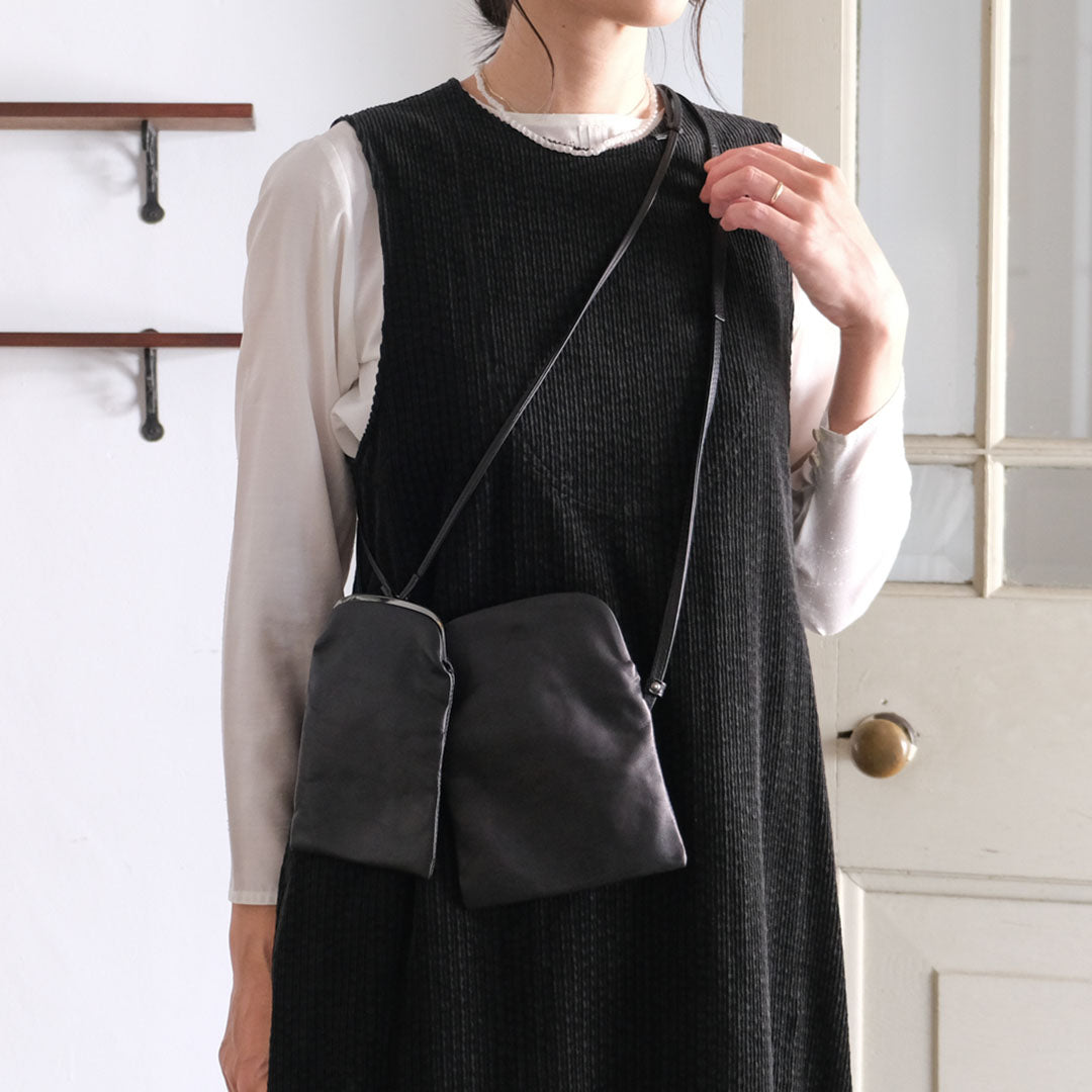 Sは、お薬やリップなどを入れるのにも適しています。 内ポケットはなく、ショルダーが取り外せる仕様になっているので、バッグインバッグとしても活躍します。Sサイズは、ケース無しの状態の眼鏡やサングラス入れにも。首からTanzakuをかけていれば、外出先でちょっと外したときの保管にも役立ちます。