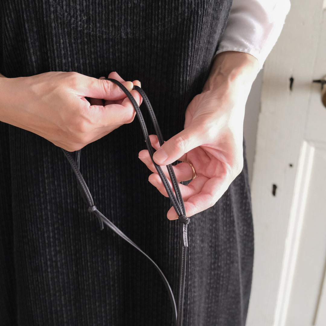 ▲ショルダーの調整部分。結び目を自由に作ってお好みの長さに調整できます