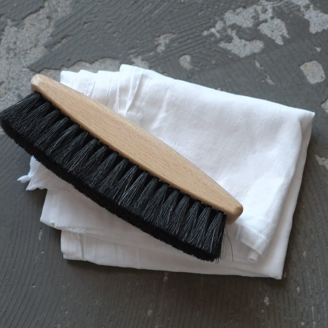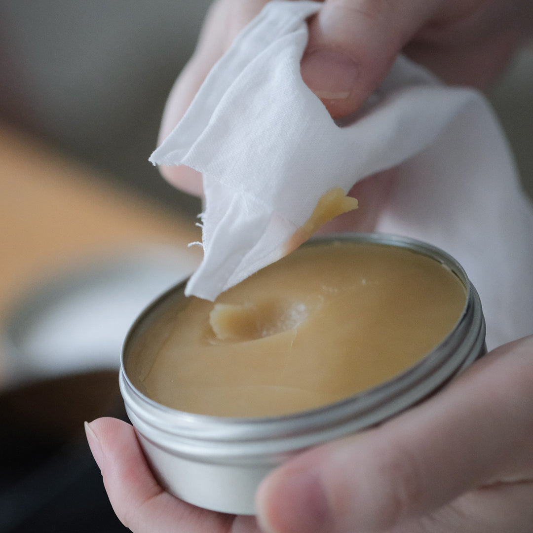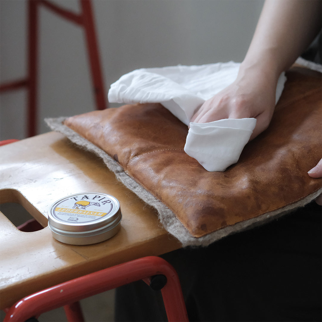 TAPIRではさまざまな道具を手掛けていますが、まずは最初に揃えるなら……と選んだのがこのページでご紹介している「艶出しブラシ」と油性ワックス「レーダーバルサム」です。
