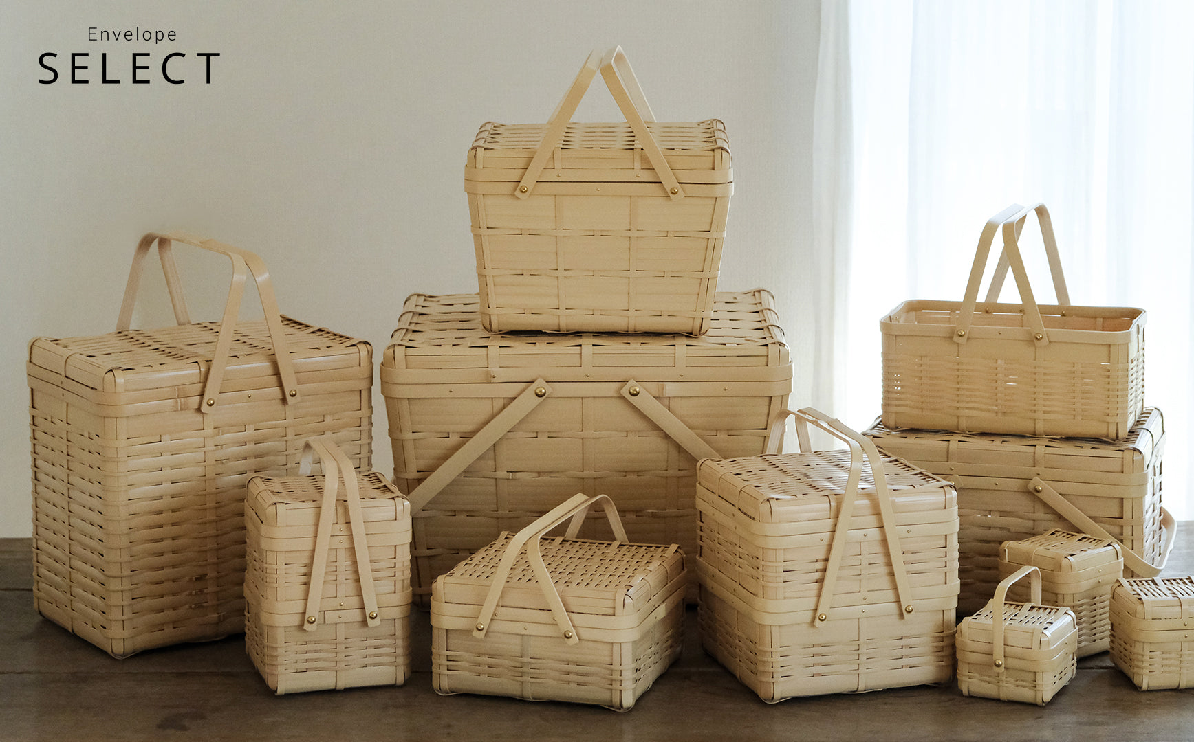 すっと角の立ったかたち、品のある白竹の色合いは、空間を清らかにしてくれるような存在感があります。室内の収納に、ピクニックやお出かけに、日々使いながらずっと大切にしたい竹かごです。