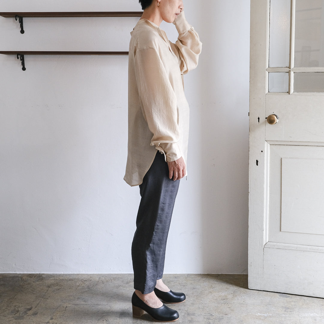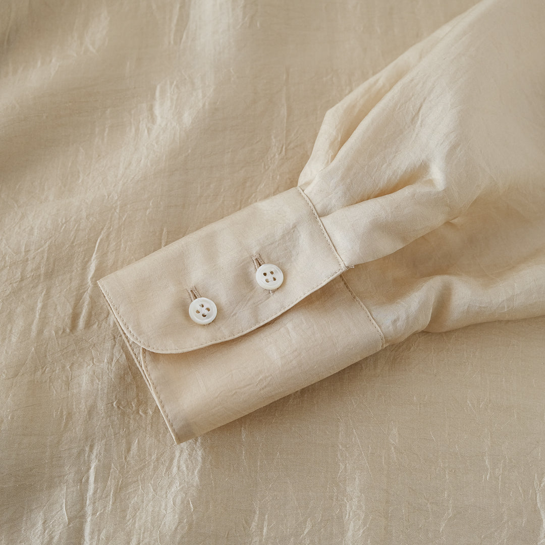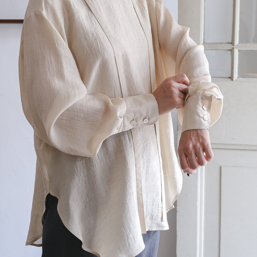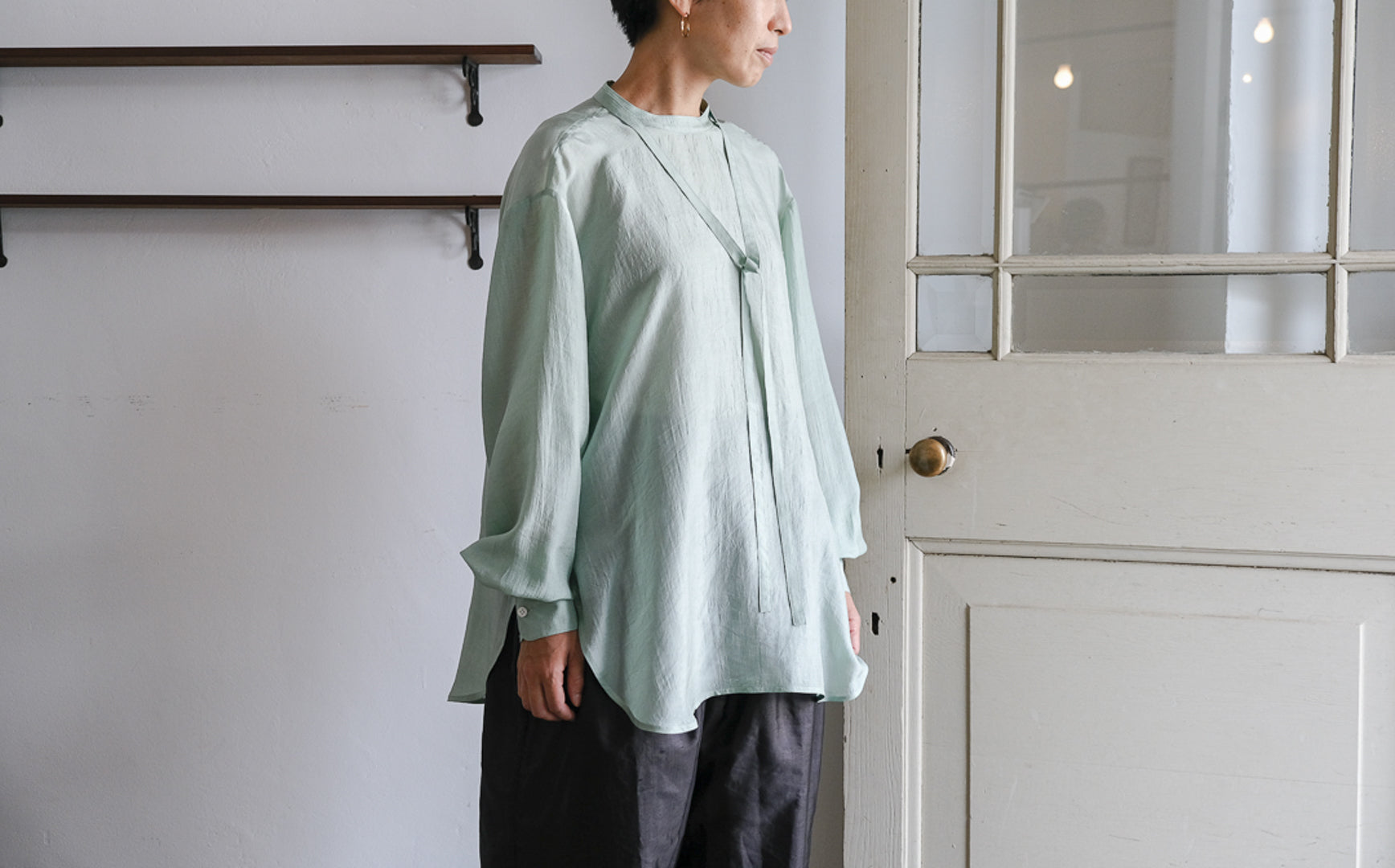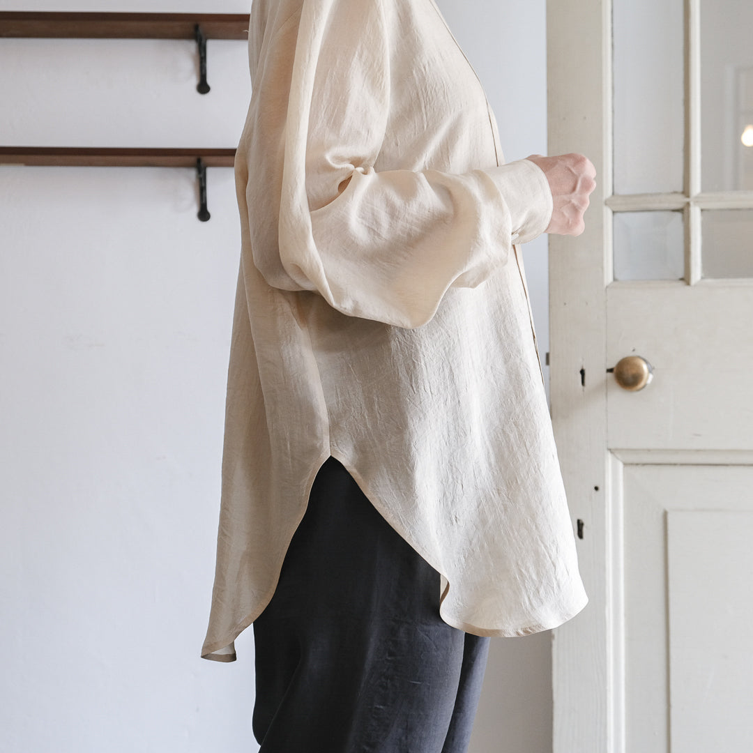 普段着に取り入れやすい、ゆったりとしたサイズ感も特長。長めのカフス、たっぷりとした袖のラインはリラックス感と品のよさを両立させてくれます。