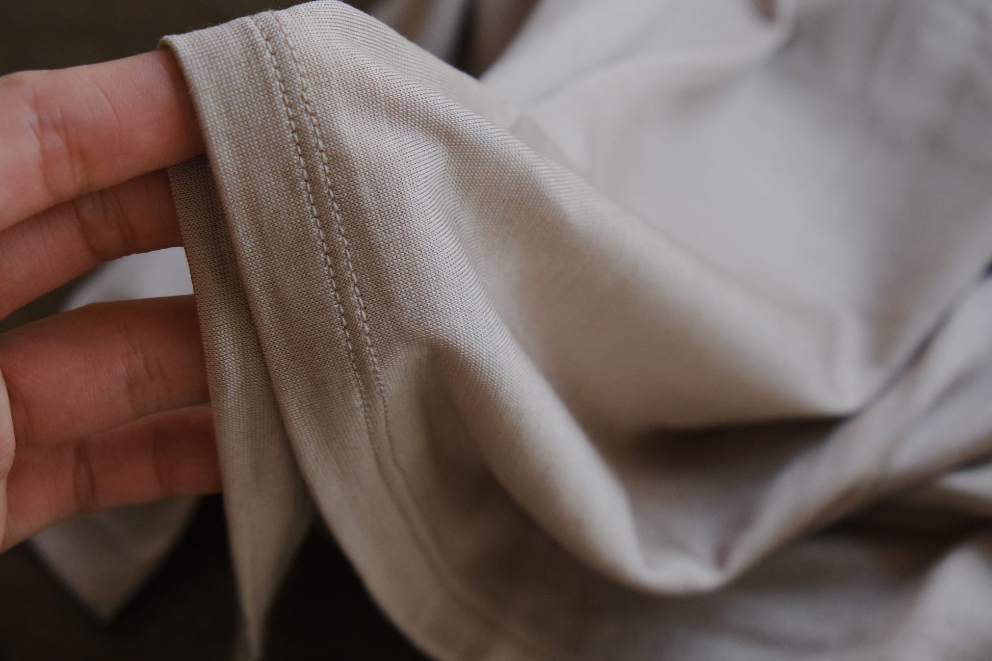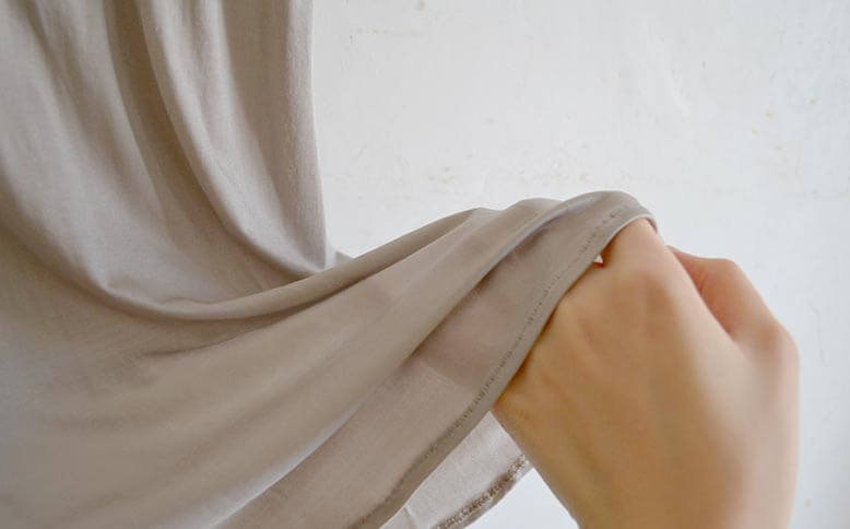 素材の持つ自然な美しさを感じられるミニマルなデザイン。触ってみれば生地の柔らかなとろみと、空気のような軽さにきっと驚くはず。