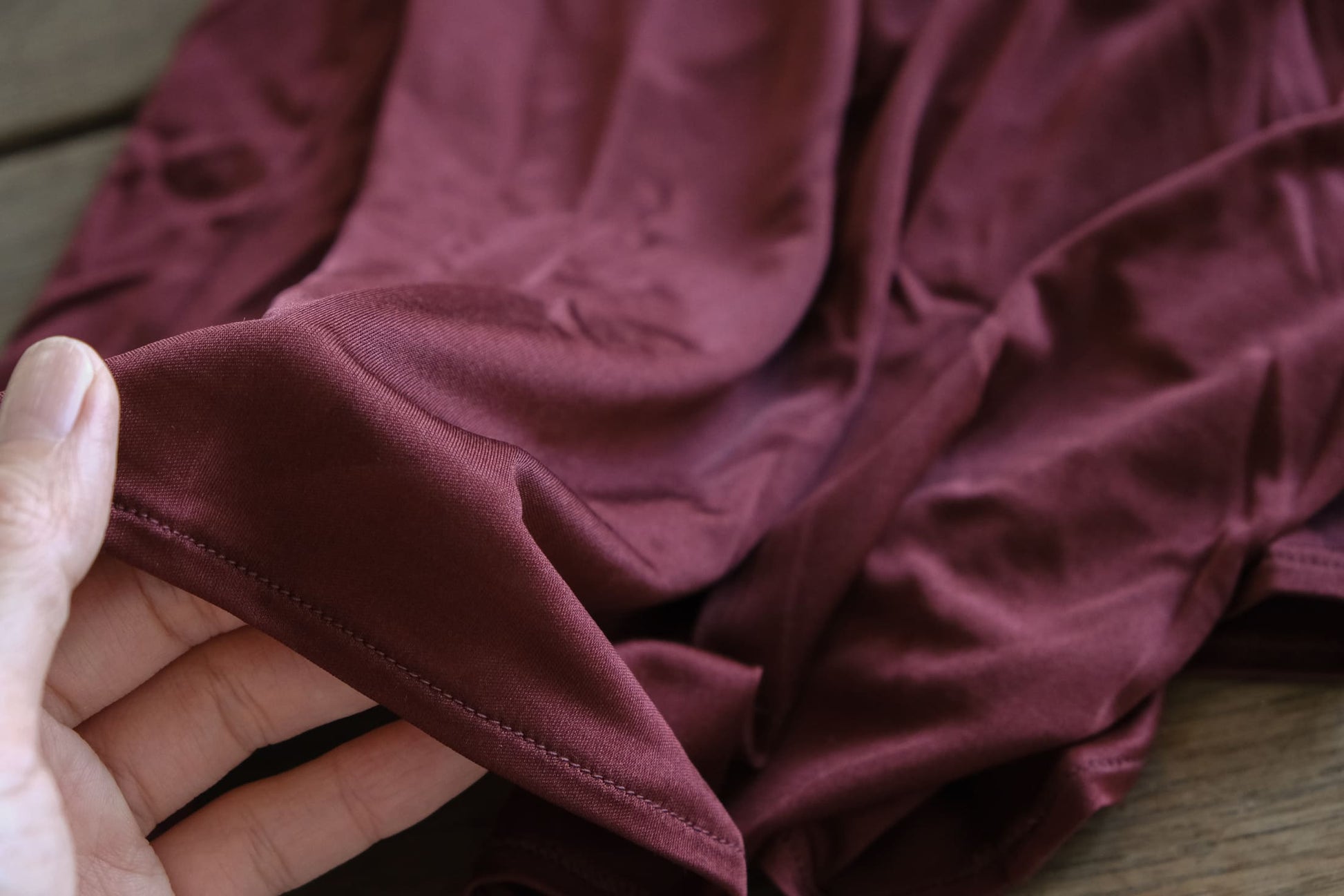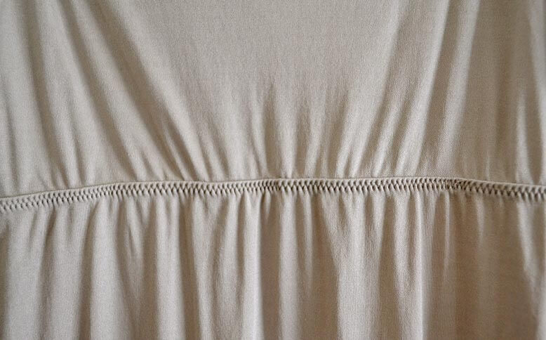バスト下はAラインで、自然と身体を覆うデザイン。おなかまわりに締め付けがない上に、生地がとても薄いので、もたつくこともありません。