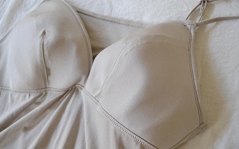 ブラジャーいらずで1枚で着ることができるのは、バストの脇まで薄いパッドで覆われているから。
