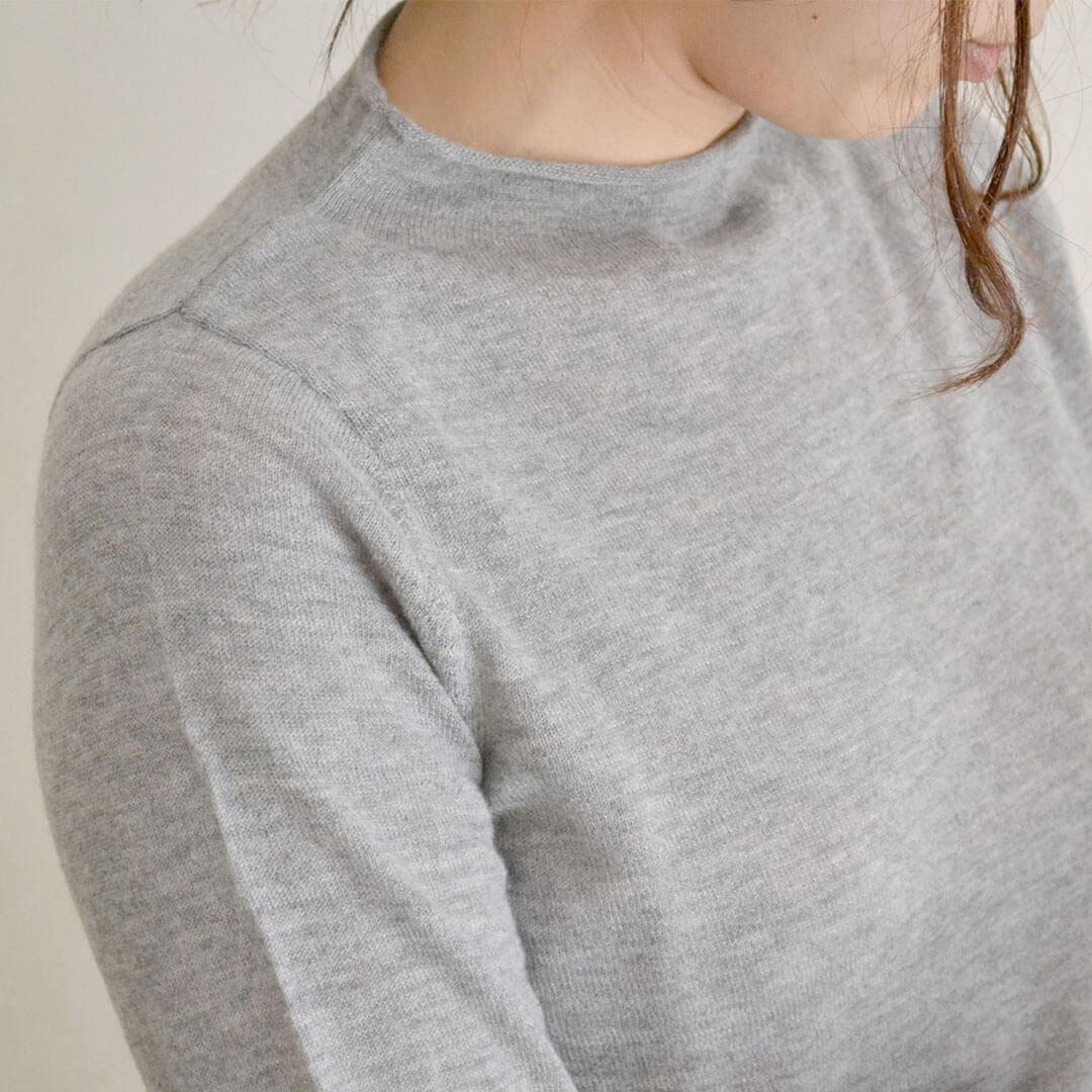 極細に紡績したカシミヤ糸を使い、繊細な編み目が実現しました。