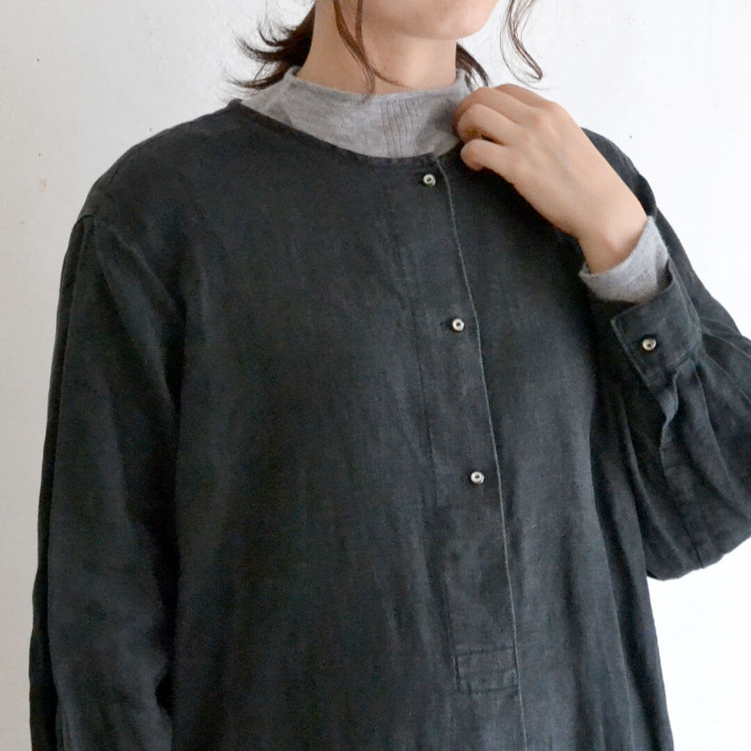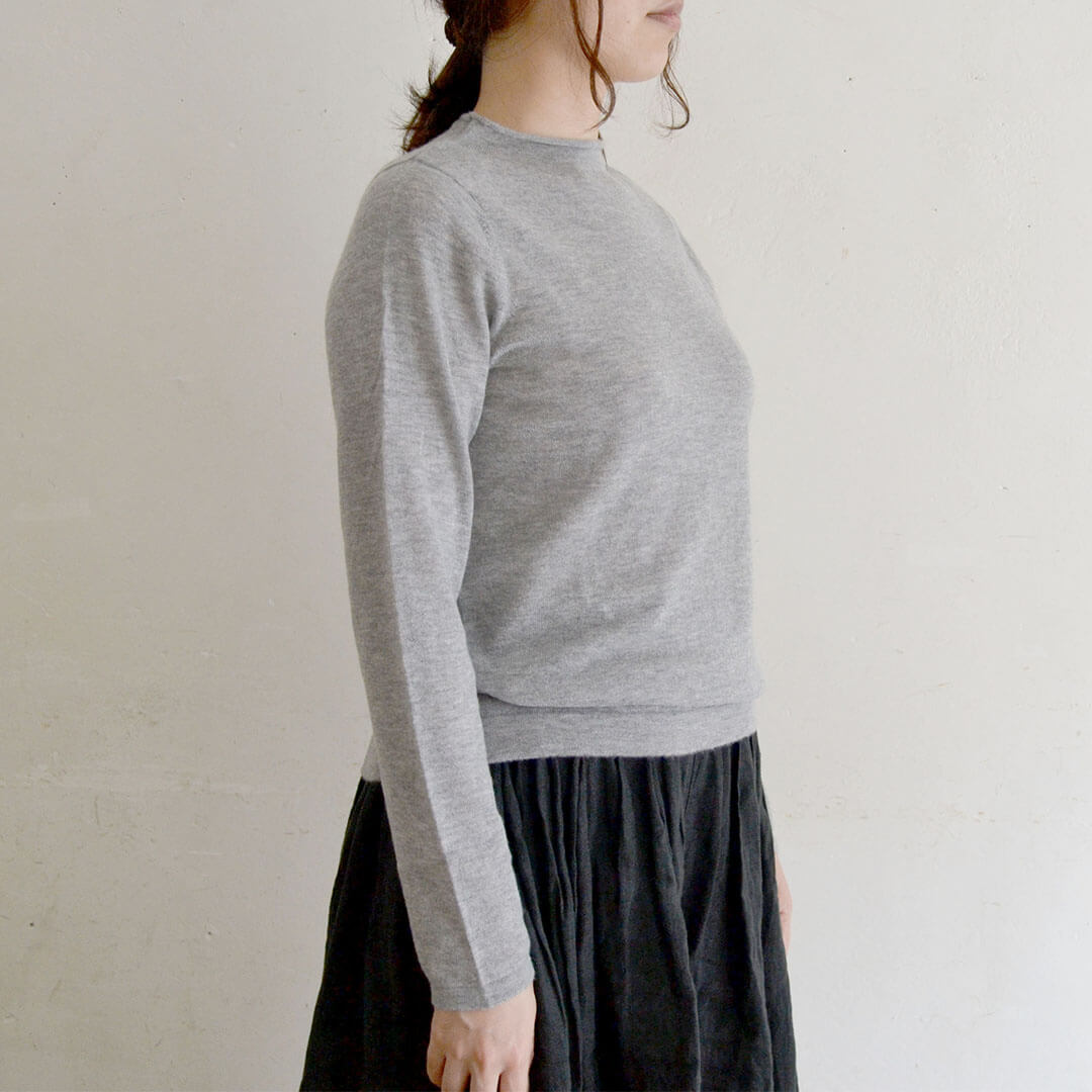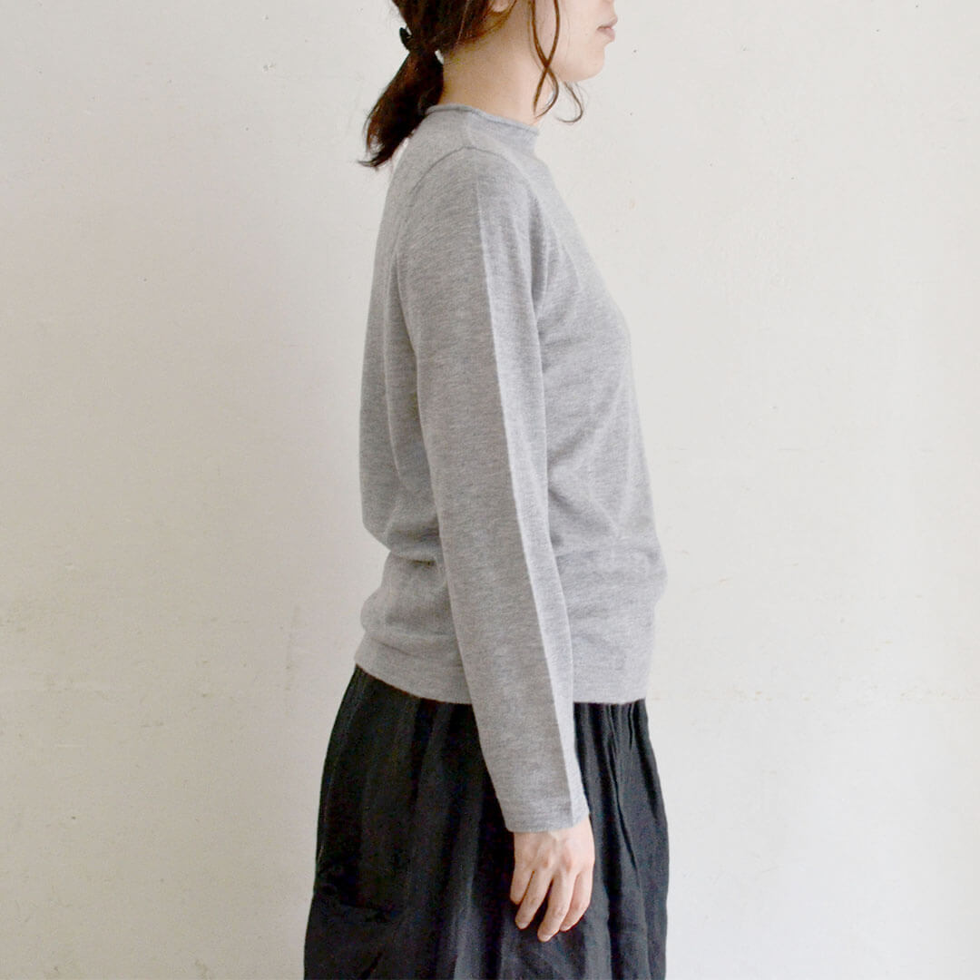 ボトルネックなので、首元まであたたか。しめつけることなく自然な着心地です。
