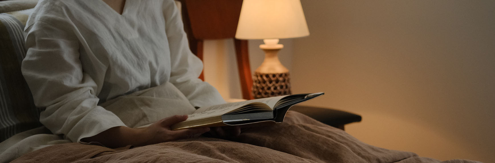 肌寒い季節はニットストールや湯たんぽで身体をあたためると、寝付きやすくぐっすり快眠。