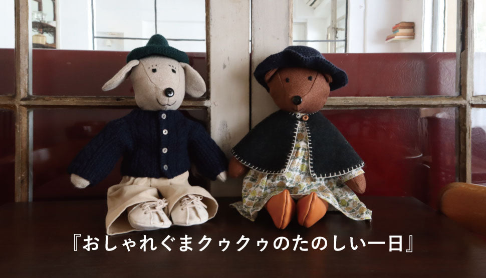 着せ替えぬいぐるみ絵本「おしゃれぐまクゥクゥのたのしい一日」の主人公、くまの「クゥクゥ」の秋のワードローブが届きました。