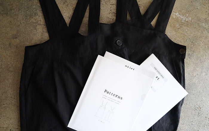 リネンバードオリジナルパターンのサロペットスカート。