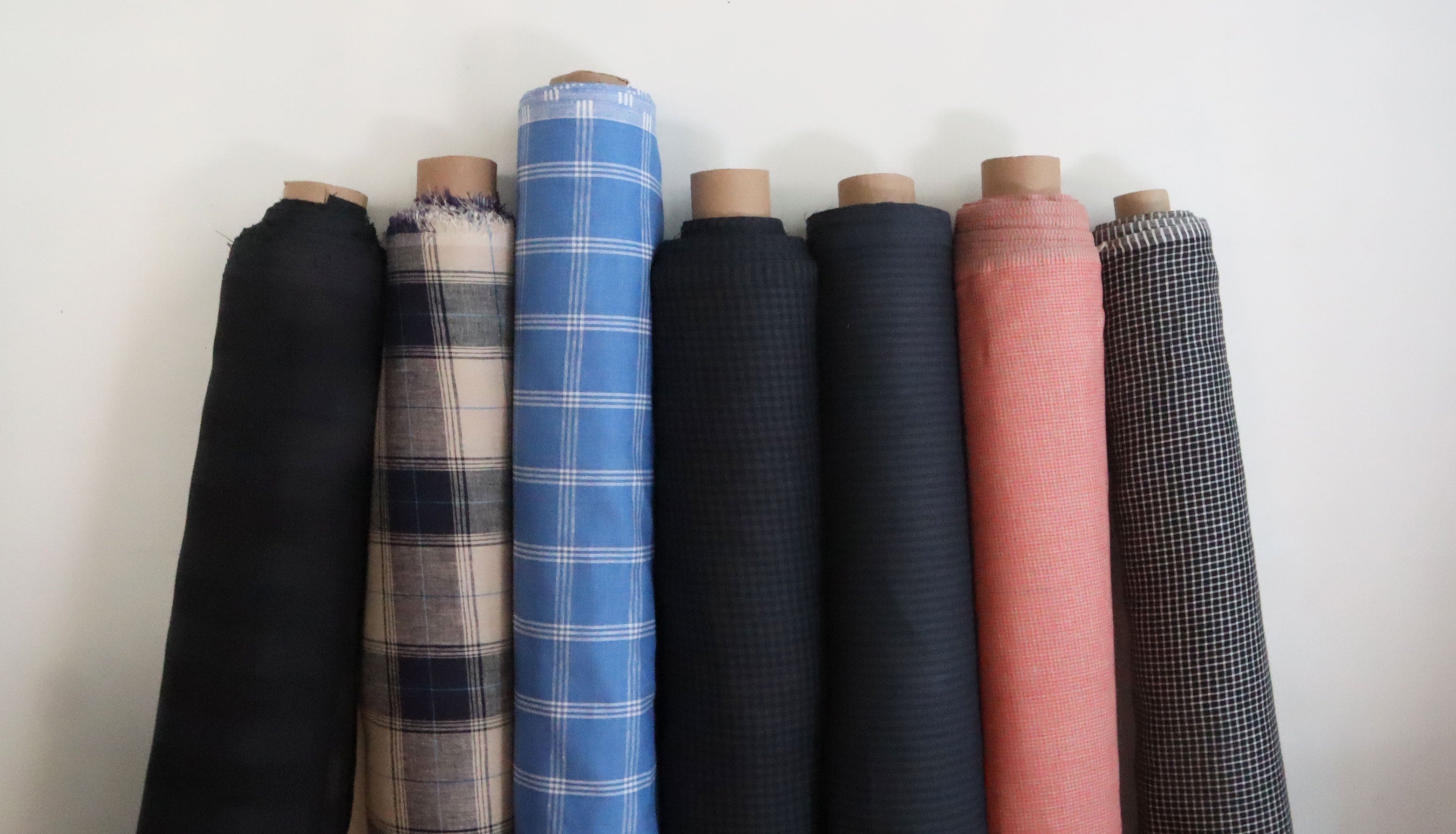 チェックやストライプなど、洋服やインテリアに向く色とりどりのリネンが揃っています。