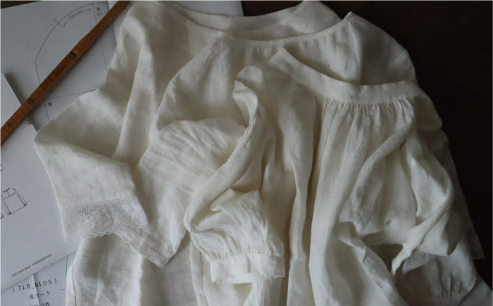 LIBECOのララはちょうどいい厚みで、やわらかくとてもしなやかなのでブラウスをつくるのにおすすめです。」