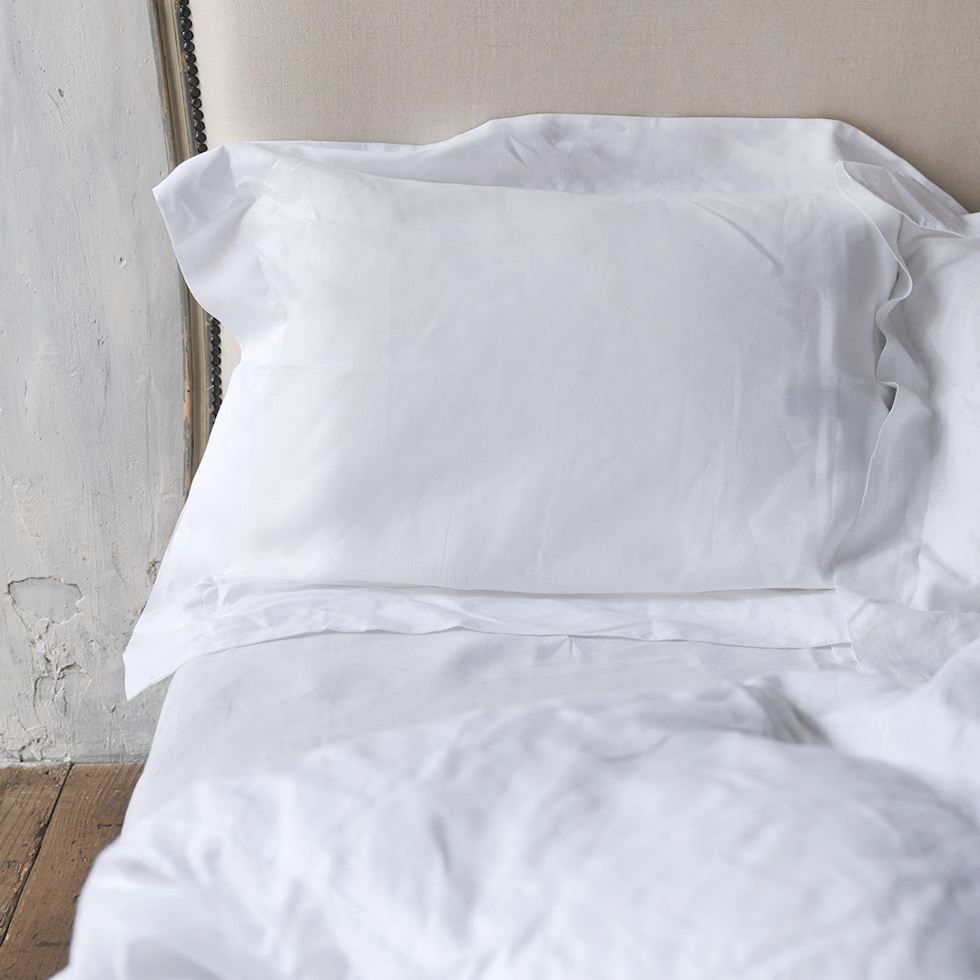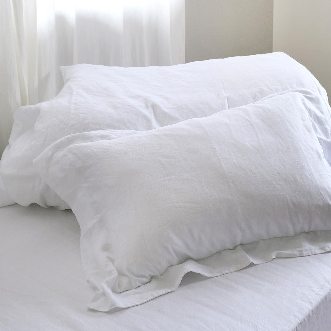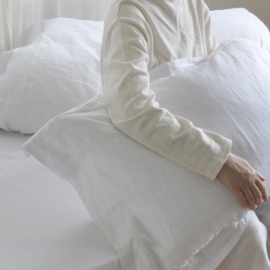 LIBECOの定番ベッドリネン、クラシックスシリーズのピローケース。高密度できめ細やかに織られた生地は、するりとした肌触り。ふちの付いた上品なデザインと、真っ白な清潔感が魅力です。入れ口は合わせ仕様になっています。