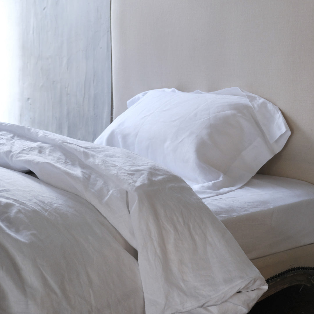 《あの人のベッドリネン》ミニマルな寝室に調和する、クラシックスの白