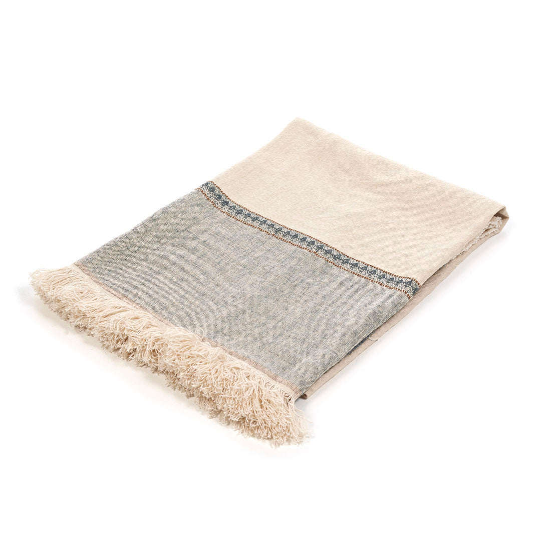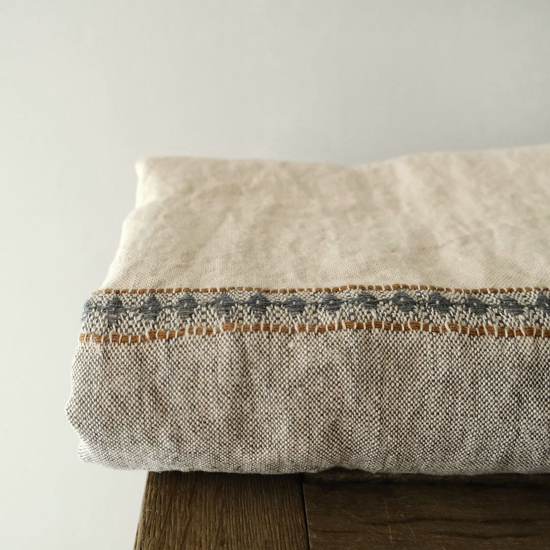 さらっとしたリネンの風合い豊かなLIBECOのスローベルジャン・イウリダ。織で施されたダイヤ柄の模様と爽やかなカラーリングが魅力です。