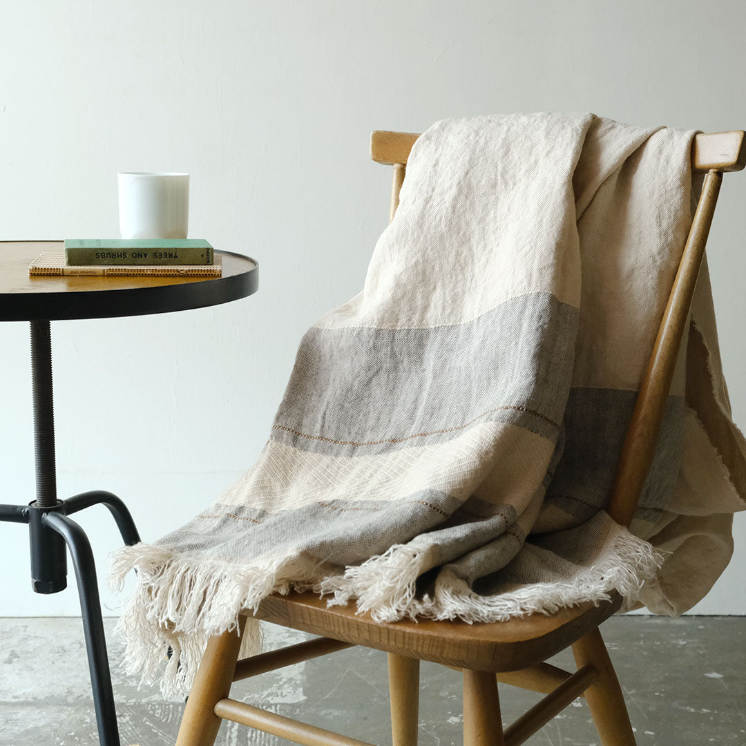 ベルギーリネンのブランドLIBECOの定番ベルジャンシリーズの大きなスローサイズは、ベッドやテーブルにかけたりと大きく楽しめる一枚。キャンプやピクニックなどアウトドアシーンにもどうぞ。