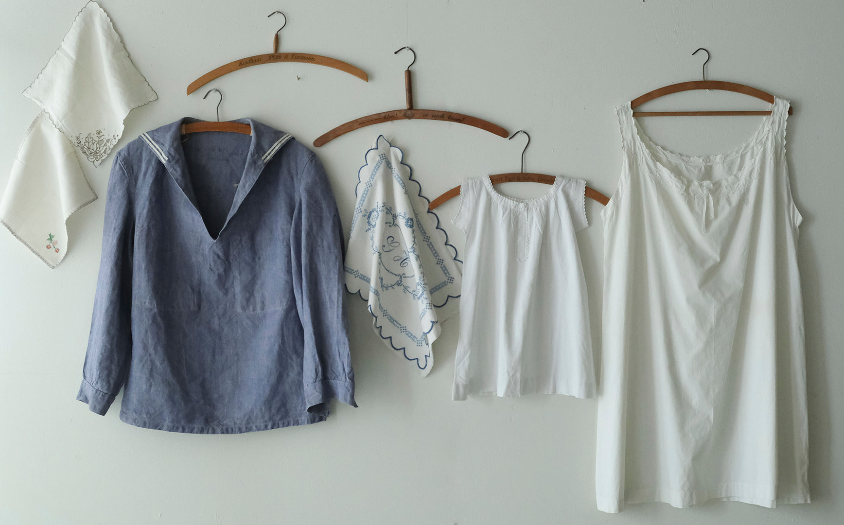 ご紹介するのは1940年~70年代のアンダーウエアやナイトウエアケース、ハンカチなど。当時のヨーロッパで使われていた布ものを、リネンバードスタッフが蚤の市で選びました。