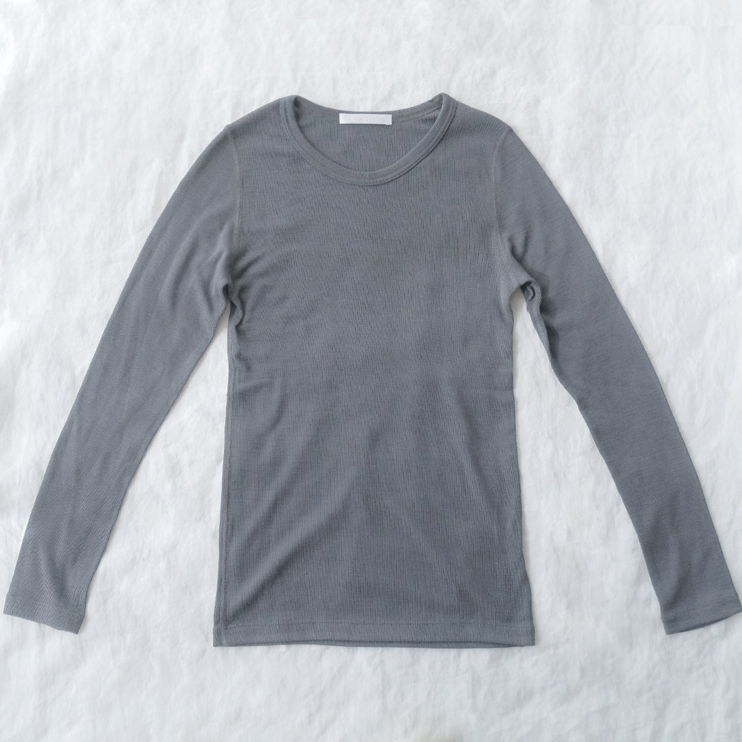 寒い季節はあたたかく、でも着ぶくれせずに過ごしたいもの。その点でルル・ロングスリーブは、アウターに響かず重ね着にぴったりです。