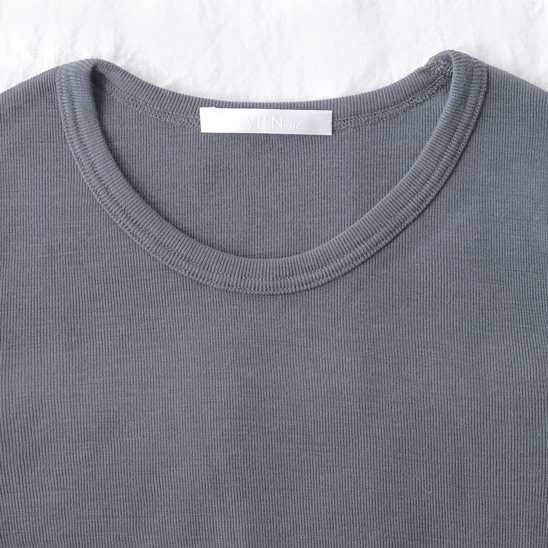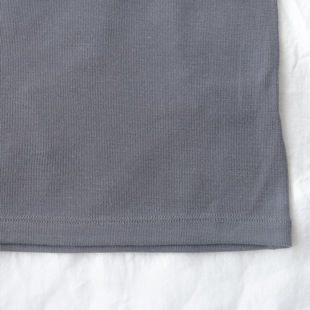 生地はやわらかく織り上げられたリブ編み。締め付け感がなくほどよく身体に寄り添うような着心地です。