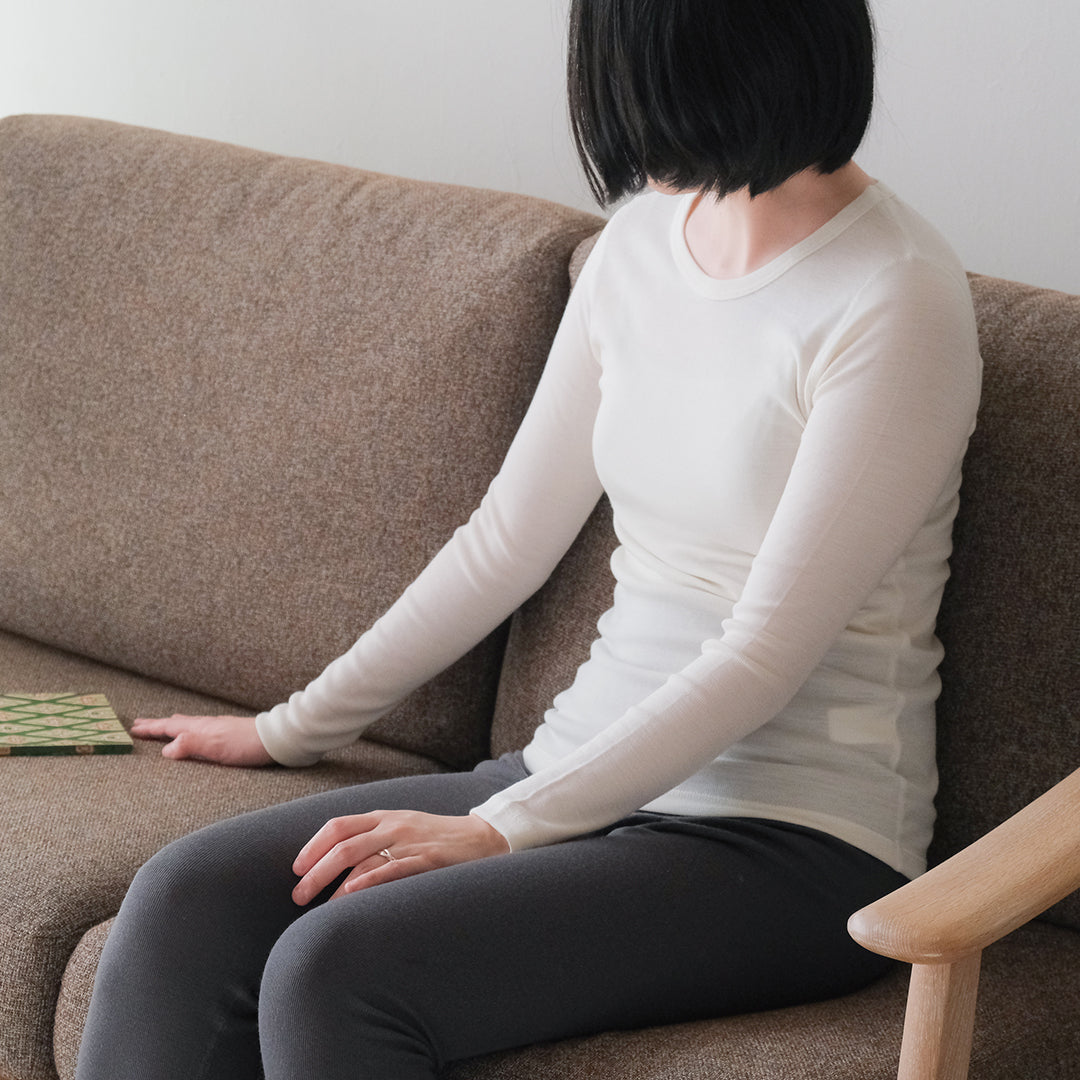 一枚でも重ねても気持ちいい、メリノウールのクルーネック