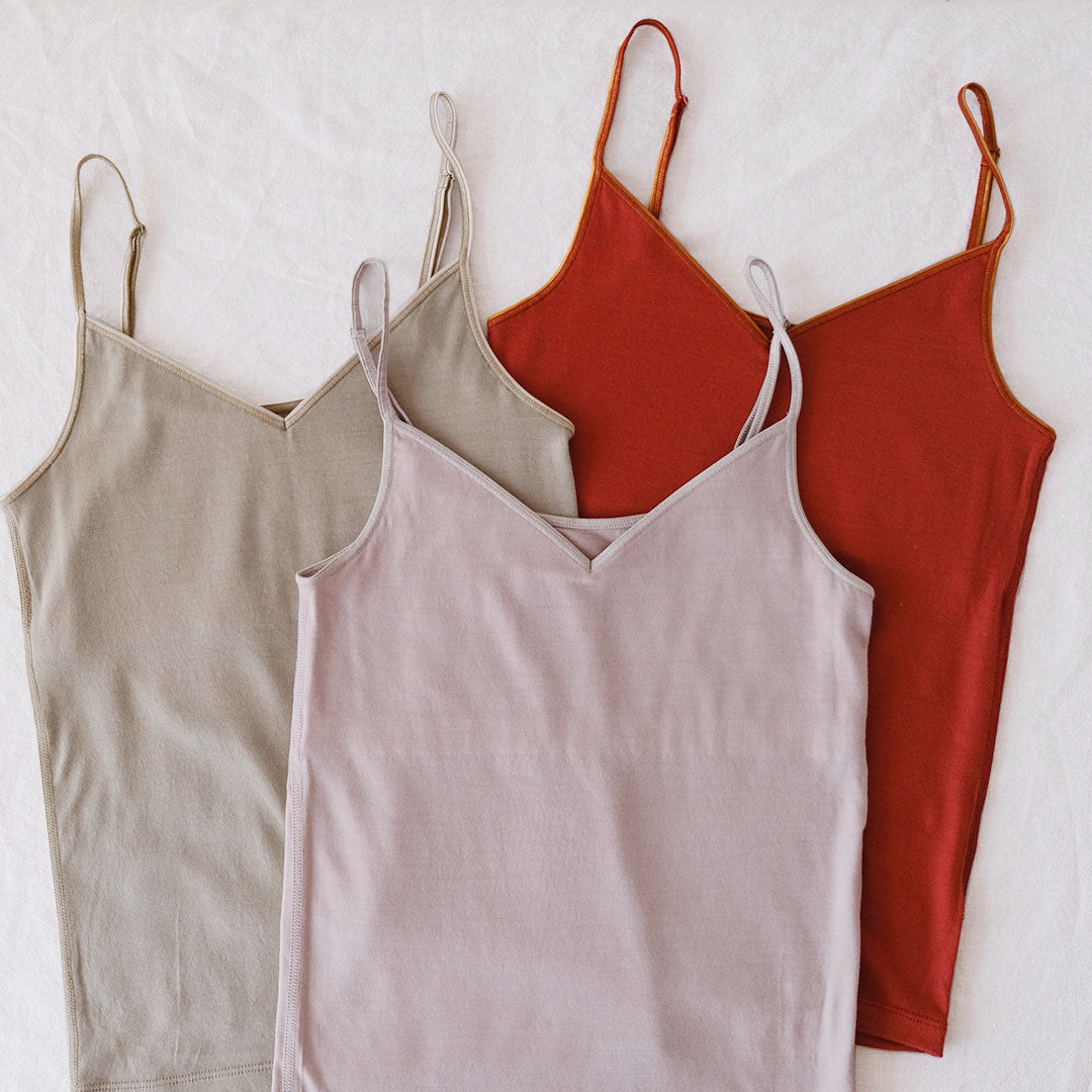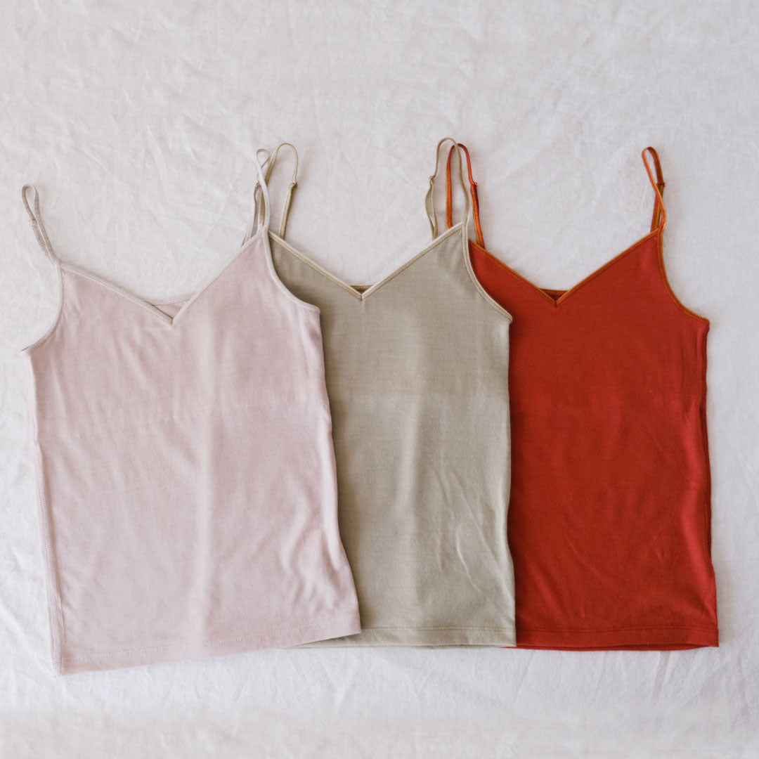 シルクのような肌触りでウールのイメージを覆す、NZ(ニュージーランド)のメリノウールブランド「YARN」のウェア。季節を問わず身につけたい、心地よい肌触りのブラキャミソールから、きれいな色味の4色をご紹介します。