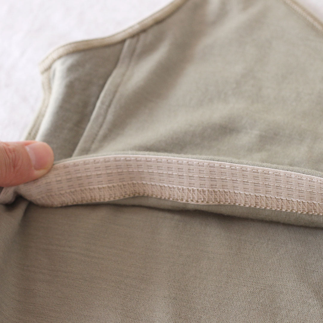 脇部分の縫い目がフラットでゴロツキ感が出ないようなっていたり、ゴムが直接肌に触れない「くるみ仕様」なところも着心地のよさにつながっています。