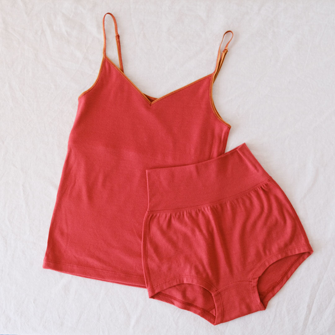 レッドは朱色のような、すこしオレンジがかった色。下着に見えない、おしゃれできれいなカラーです。