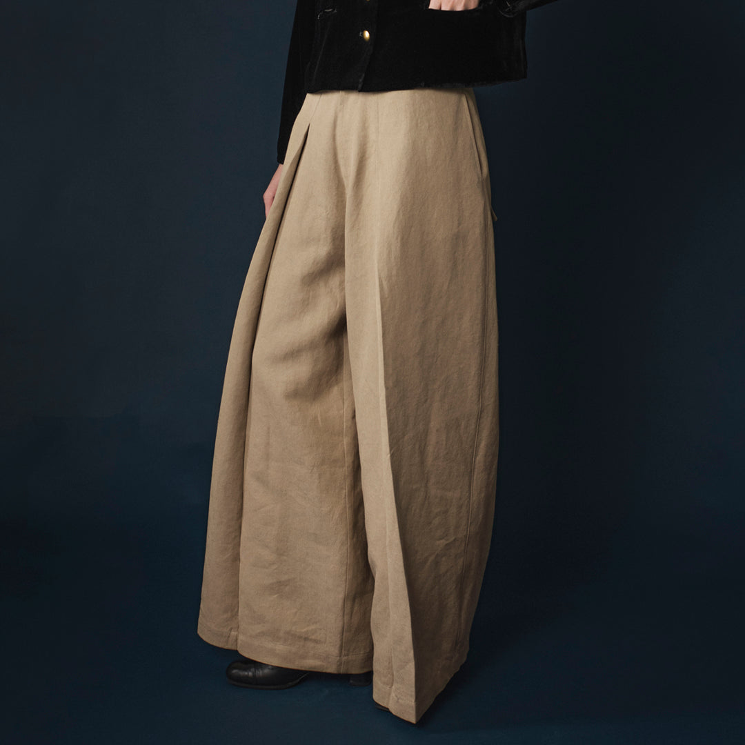 柔らかなリネンデニムで仕立てたパンツ《エドモン》とスカート《ジャニーヌ》は、薄手で涼しく夏でもデニムを楽しみたい方におすすめのアイテム。 さらっとしたリネンらしい質感がコットンデニムとはまたひと味違った肌触り。デニム特有の硬さがなく、やわらかな生地感が特徴です。 スカート:ジャニーヌ 太めのロープベルトがついたリネンデニムスカート。裾にダーツが入り、やや丸みのあるコクーンシルエット。スリットが入り足さばきも軽やかです。取り外しのできるロープベルトは、固結びや蝶結びなど着こなしによって変えて。 ジャニーヌを見る パンツ:エドモン ウエストまわりはすっきりと、切り替え下からギャザーを寄せてアクセントに。バランスが取りやすく、トップスを選ばない万能なパンツです。 エドモンを見る