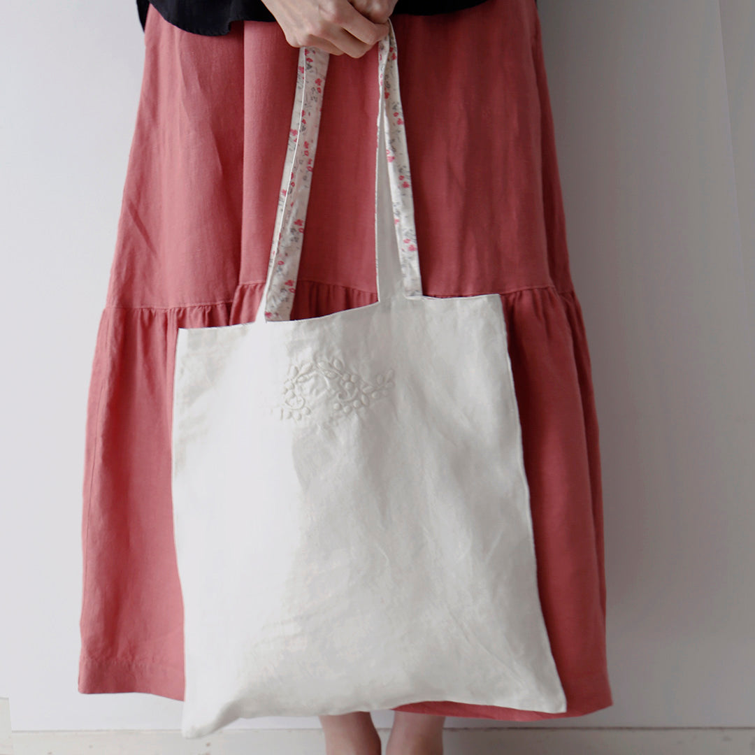 南フランスの伝統的な技法である「ブティ」を施した刺繍ワンピース「ローラ」、ジャケット「ベス」、トートバッグ「サック・ブティ」の3型をご紹介します。ブティの繊細な技法をリネン素材に落とし込み、リゼッタならではの柔らかな雰囲気に仕上げています。 デザイナーが南仏で出会ったアンティークのベッドスプレッド。白い布地に敷き詰められたさまざまな模様は、ふっくらと立体的に浮かび上がり、ずっしりとした重みを感じさせます。その丁寧で細やかな手仕事の美しさに魅了され、ブティの技法を取り入れたコレクションを仕立てました。 「ブティ」とは古くから女性たちが培ってきたキルトの手法です。2枚の布を重ねて模様のステッチを施し、その間にコットンヤーンなどの詰め物をすることで、模様をふっくらと浮き上がらせる伝統的な技法。基本的には白布に施されることが多いです。 今回のコレクションの図柄は2種類。ワンピースとトートバッグには、草や葉をモチーフにしたデザイン。葉の柔らかい曲線と丸みを帯びたふくらみ、そしてひと針ひと針のハンドステッチが際立ち、あたたかさが伝わるデザインに仕上がりました。 ジャケットは、どこかオリエンタルなモチーフ。ブティ刺繍と、ドロンワークの繊細な透かし模様を組み合わせた大人っぽいデザイン。 ドロンワークは、生地の緯糸や経糸を抜いてかがり、透かし模様を作る手法です。機械レースにはない、手仕事ならではの繊細さが魅力です。 デザイナーが南仏で出会ったアンティークのベッドスプレッド。白い布地に敷き詰められたさまざまな模様は、ふっくらと立体的に浮かび上がり、ずっしりとした重みを感じさせます。その丁寧で細やかな手仕事の美しさに魅了され、ブティの技法を取り入れたコレクションを仕立てました。 「ブティ」とは古くから女性たちが培ってきたキルトの手法です。2枚の布を重ねて模様のステッチを施し、その間にコットンヤーンなどの詰め物をすることで、模様をふっくらと浮き上がらせる伝統的な技法。基本的には白布に施されることが多いです。 今回のコレクションの図柄は2種類。ワンピースとトートバッグには、草や葉をモチーフにしたデザイン。葉の柔らかい曲線と丸みを帯びたふくらみ、そしてひと針ひと針のハンドステッチが際立ち、あたたかさが伝わるデザインに仕上がりました。 ジャケットは、どこかオリエンタルなモチーフ。ブティ刺繍と、ドロンワークの繊細な透かし模様を組み合わせた大人っぽいデザイン。 ドロンワークは、生地の緯糸や経糸を抜いてかがり、透かし模様を作る手法です。 機械レースにはない、手仕事ならではの繊細さが魅力です。...