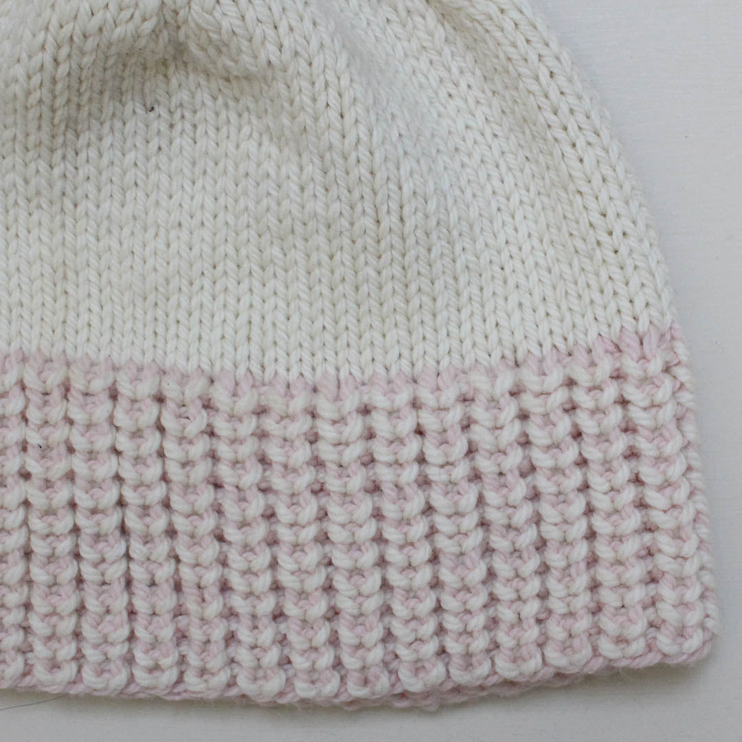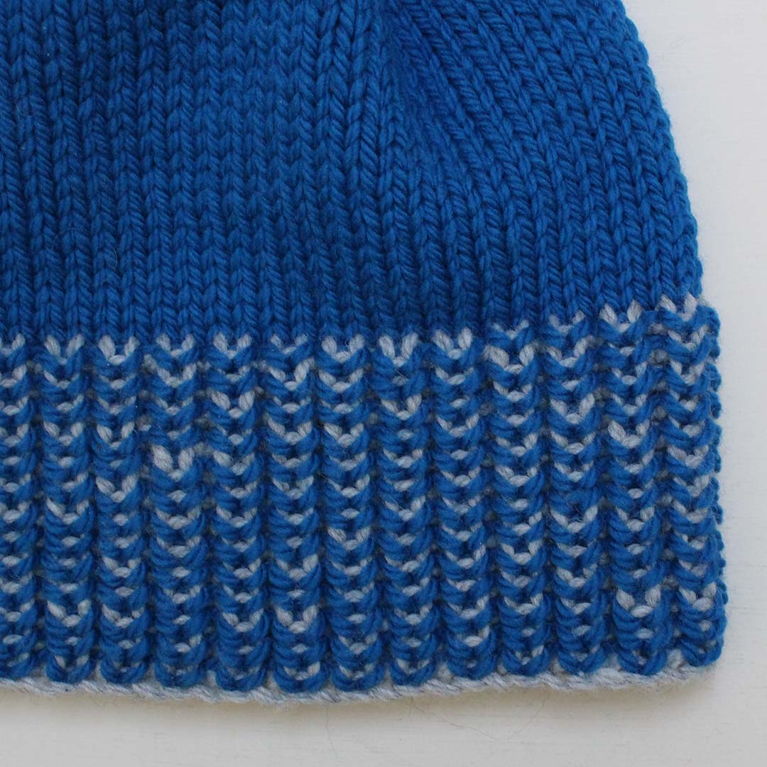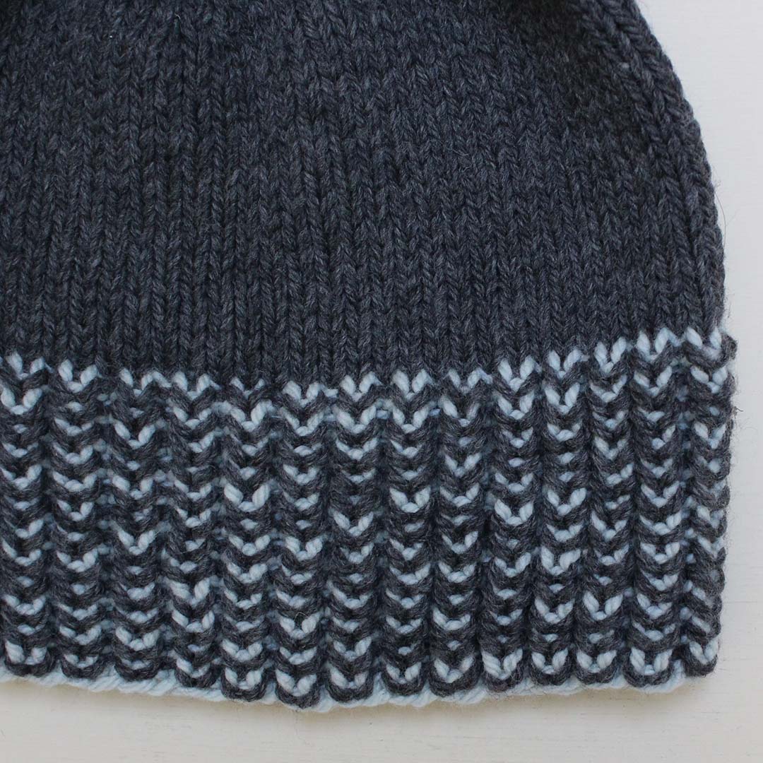 2色使いのリブがポイントの「引き上げ編みのリブをつけたハット」完成品オーダーを承ります。