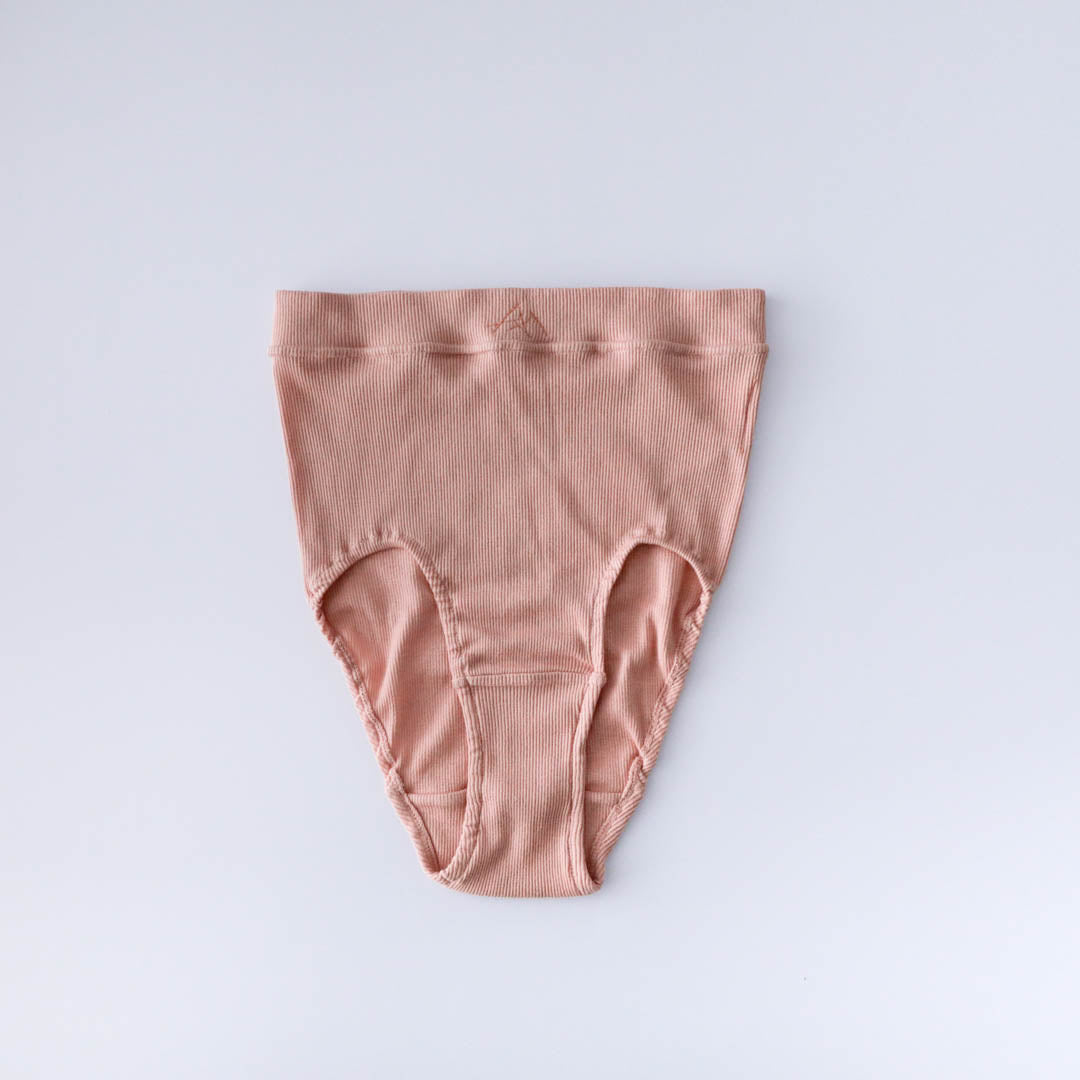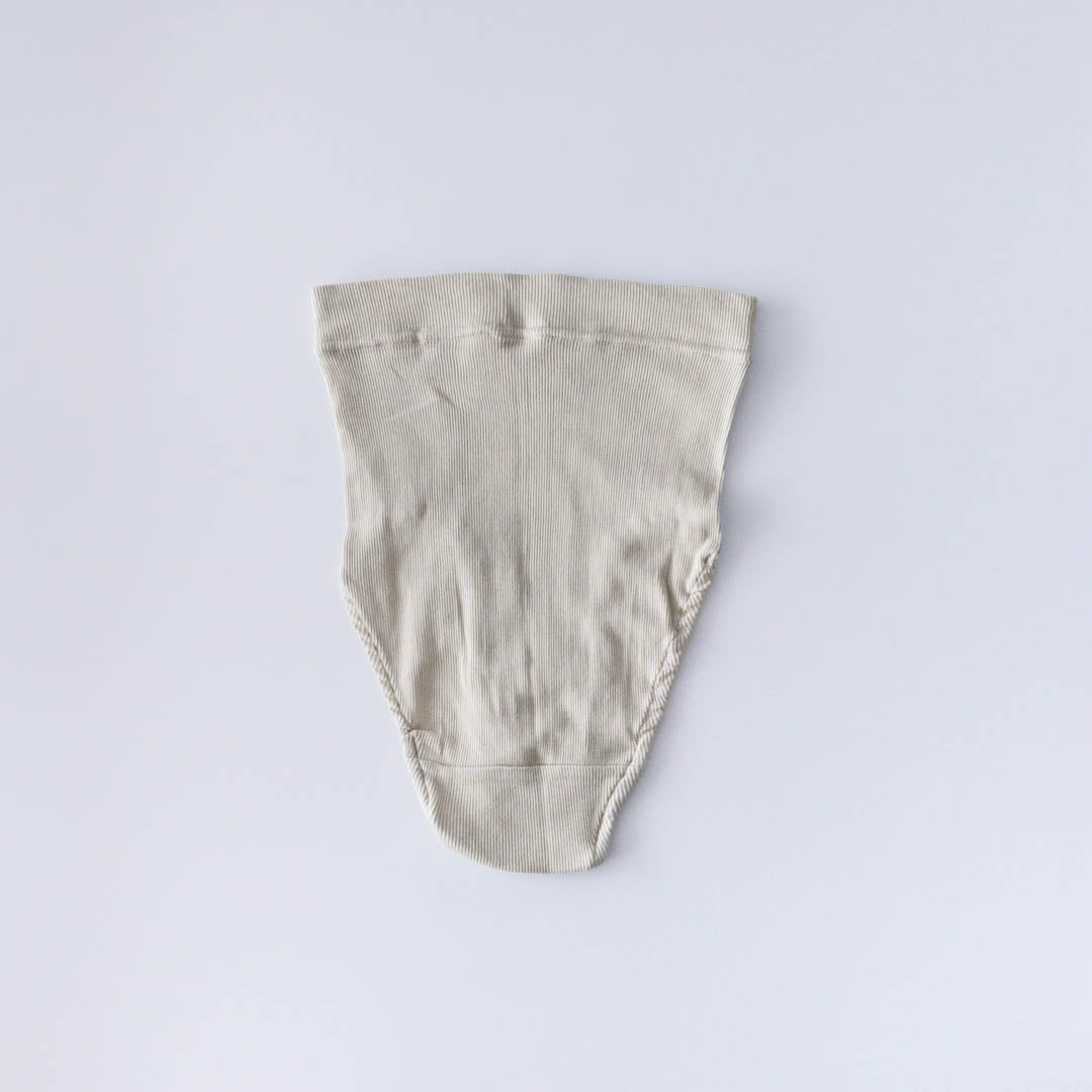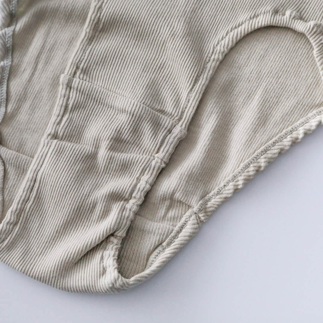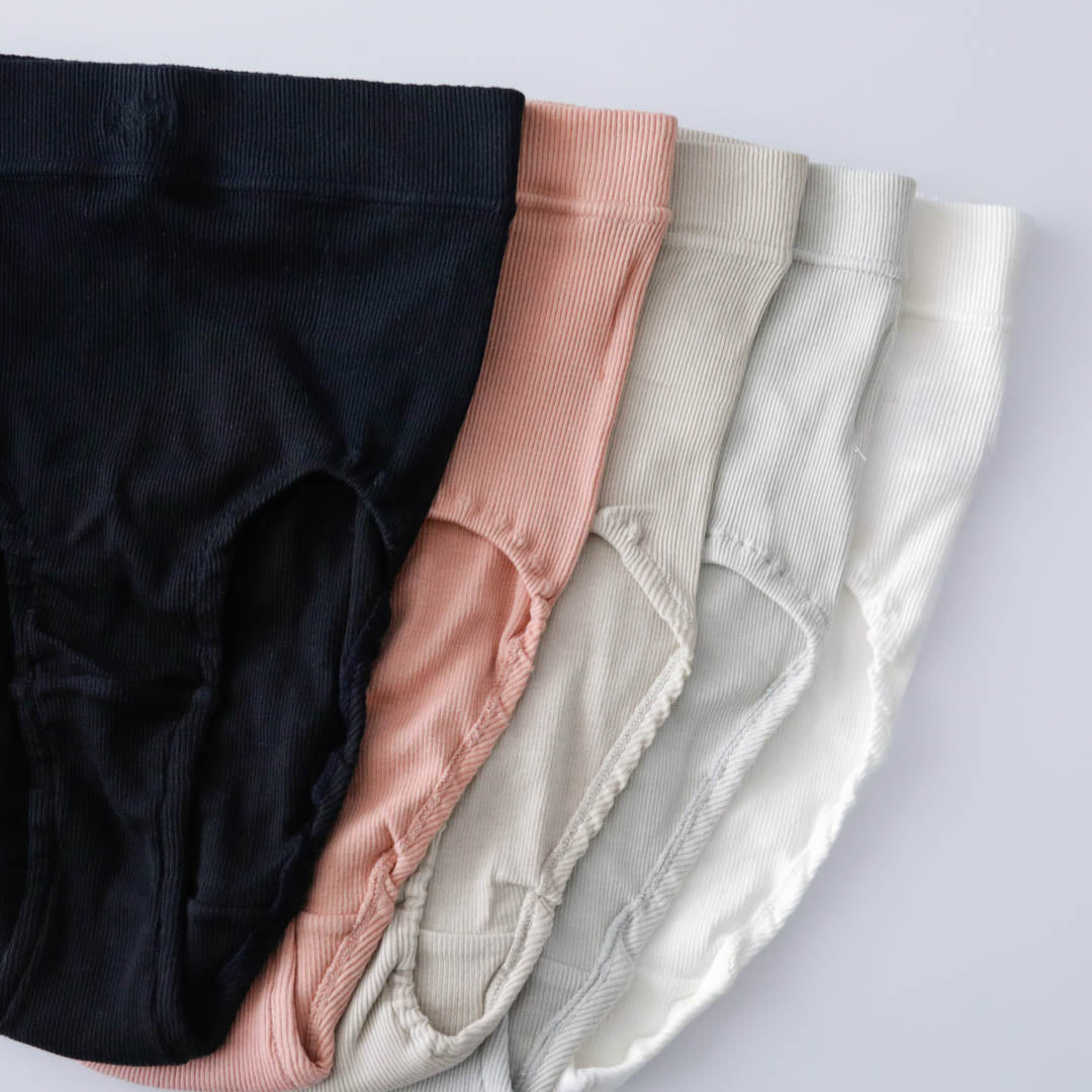 コットンリブのショーツもポイントがたくさん詰まったme.の力作。サイドに縫い目のない筒状をいかした設計で、お尻をやさしく包んでくれるんです。