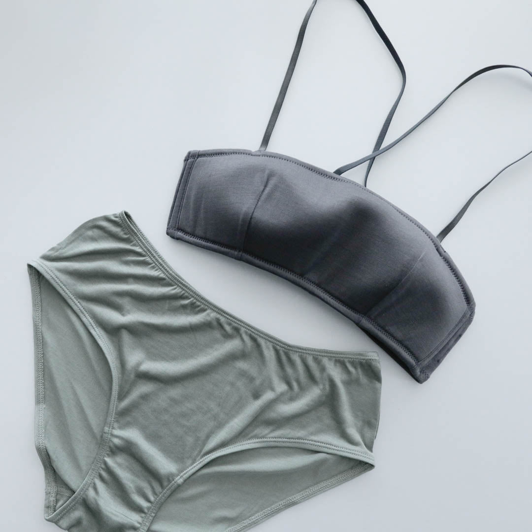 ▲バンドゥブラジャー/チャコール、ベーシックショーツ/セージ