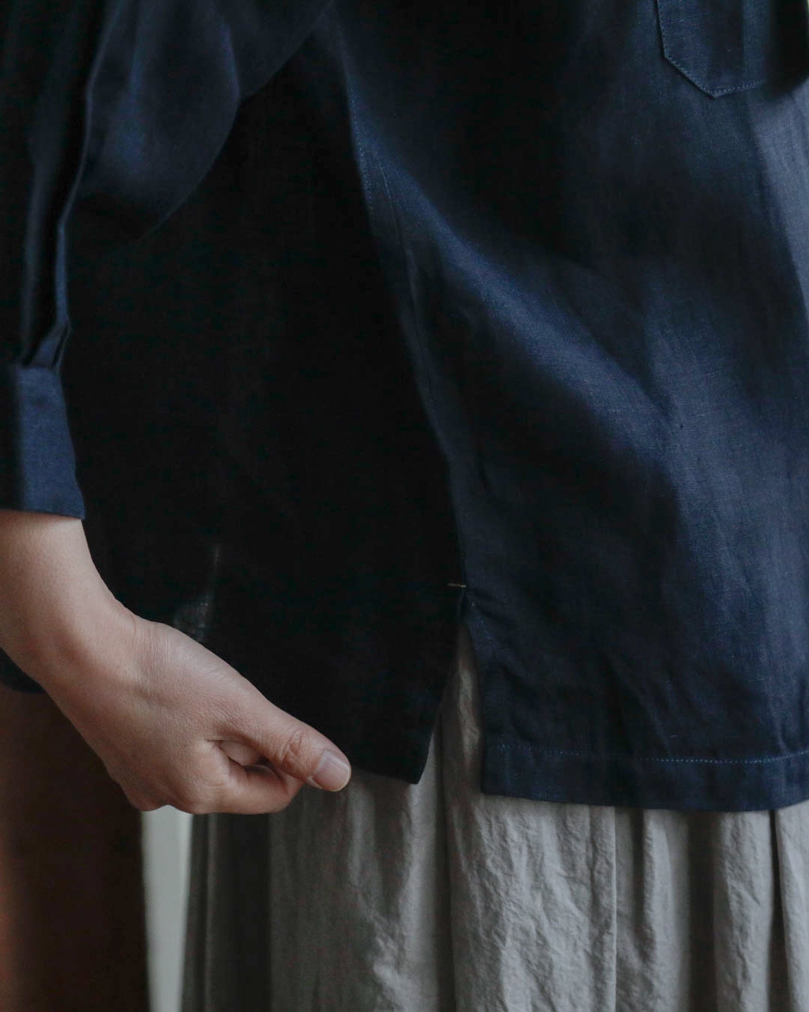 ※ENYOでは直線縫いのミシン以外は縫製のマシンを使うことがありません。縫い代の始末はロックミシンを使用せず折伏せ縫いをし、丈夫に仕立てています。