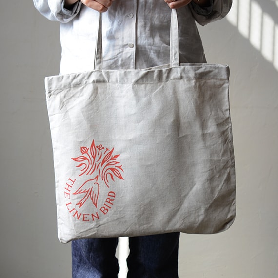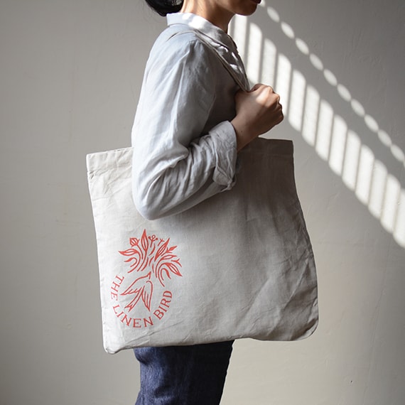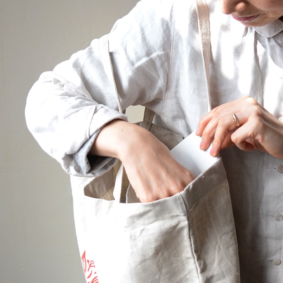 ベーシックなフラックス地に、スタンプを押したようなロゴがポイントになっています。