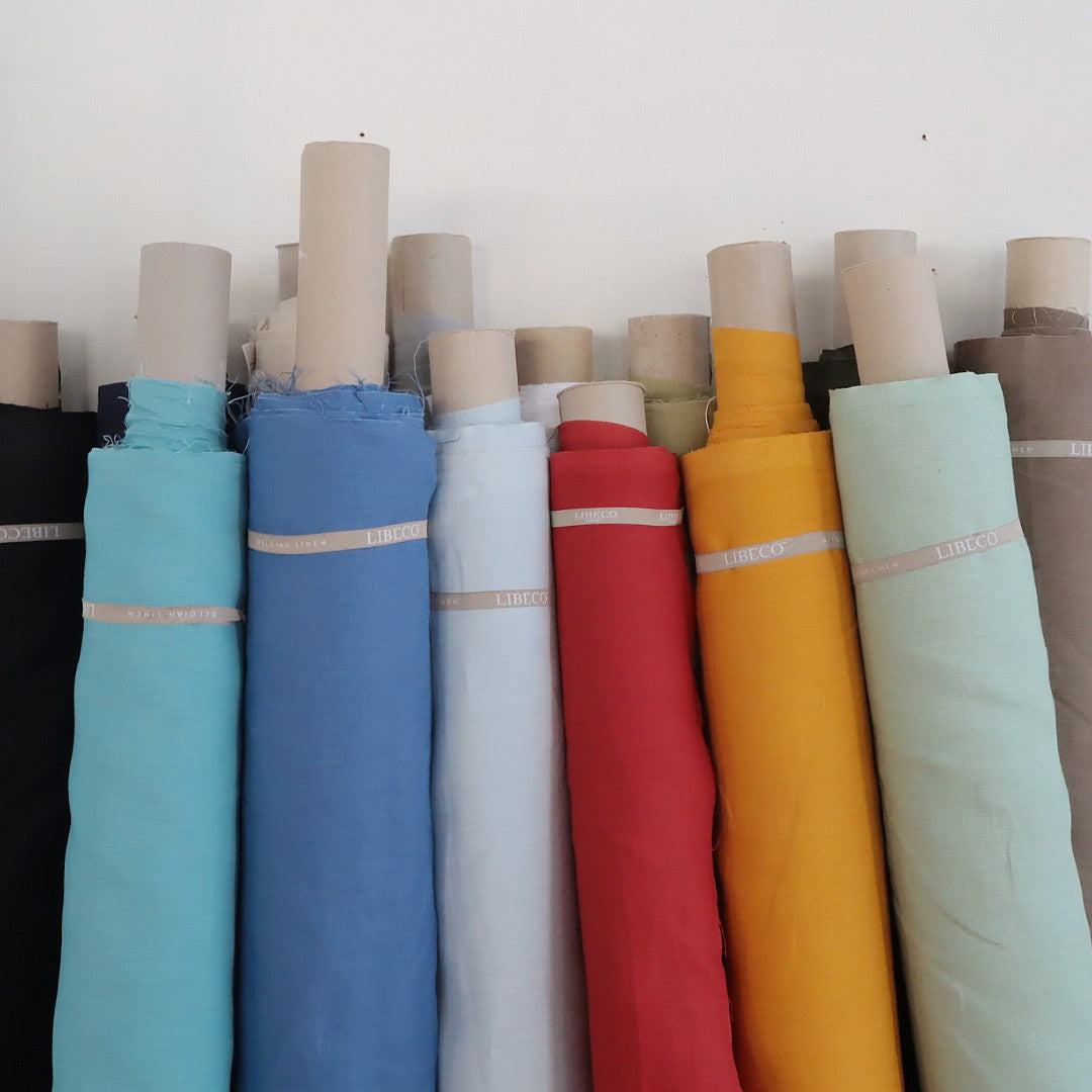 発色がよく、しっかりとした質感の平織りのリネン生地「モナコ」。