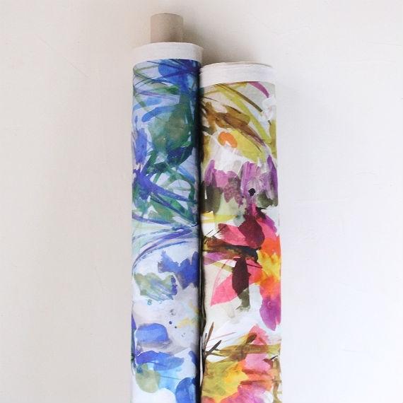 インテリア向けファブリックは天然素材にこだわり、精緻なデジタルプリントでデザイン性の高い生地を数多く発表しています。