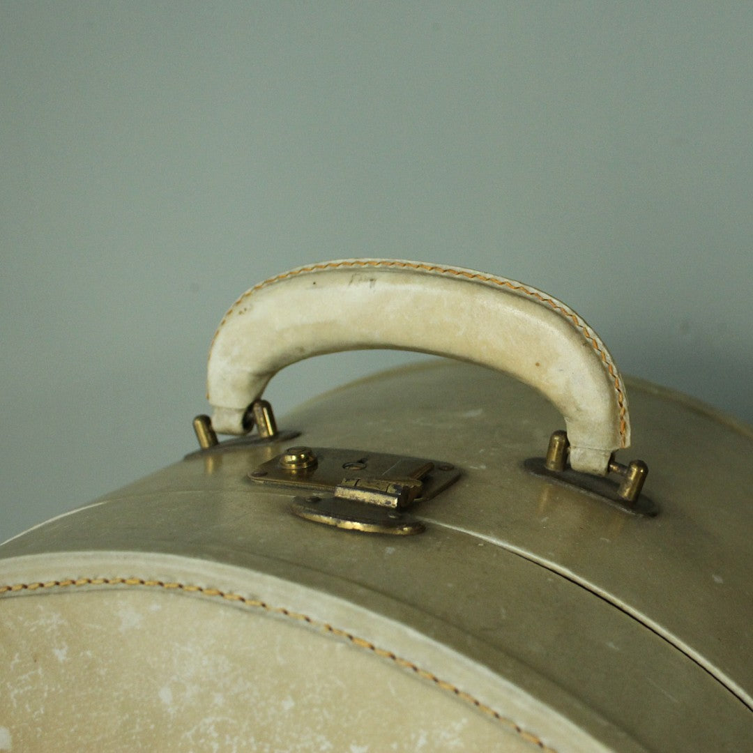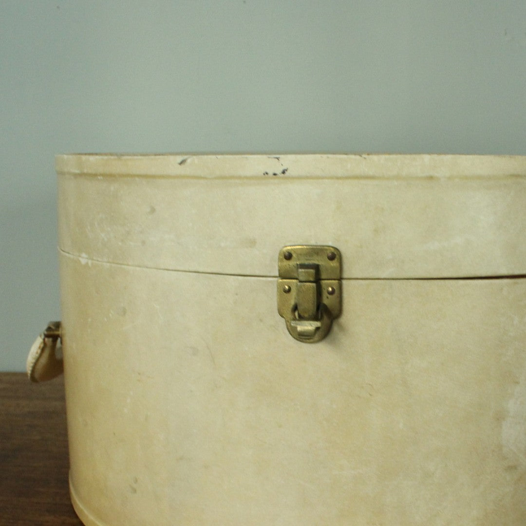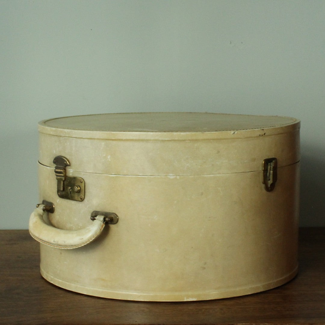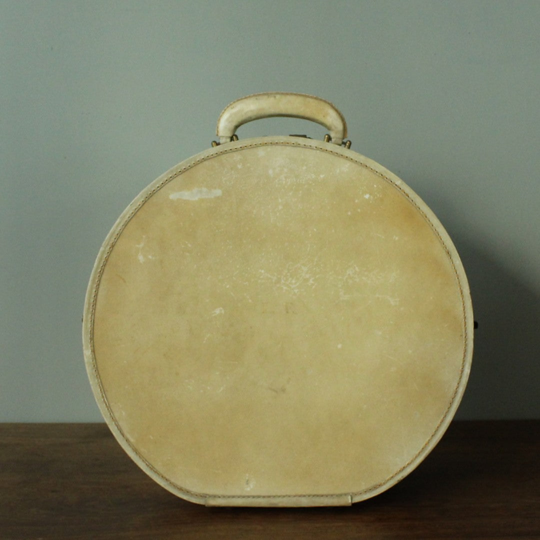 もともとはハットを収納するためのトランク。革製で内側は茶色の布が張ってあり、ふたの裏にポケットがついています。大きいので収納アイテムとしてお部屋に置いておいても。経年の使用感があり、剥がれ、汚れがありますが全体的なコンディションはよいです。鍵はついていません。サイズ:縦39cm×横41cm×深さ23cm(持ち手含まない)※画面の表示の色は、ご利用の環境その他により実際の色と多少異なる場合があります。