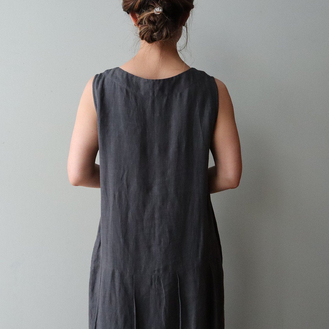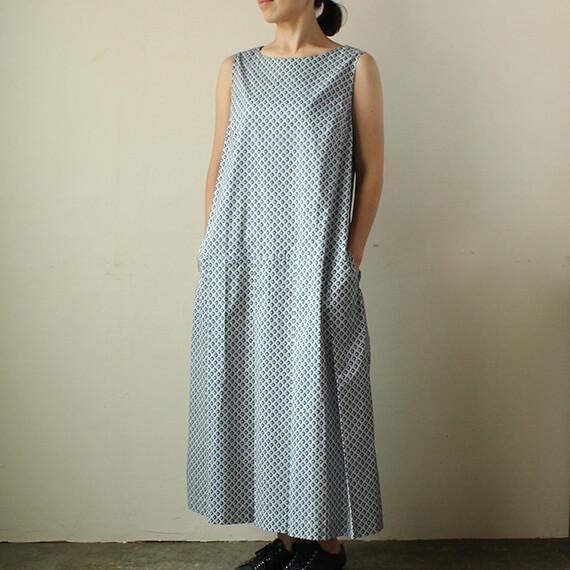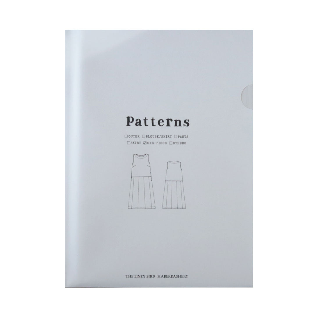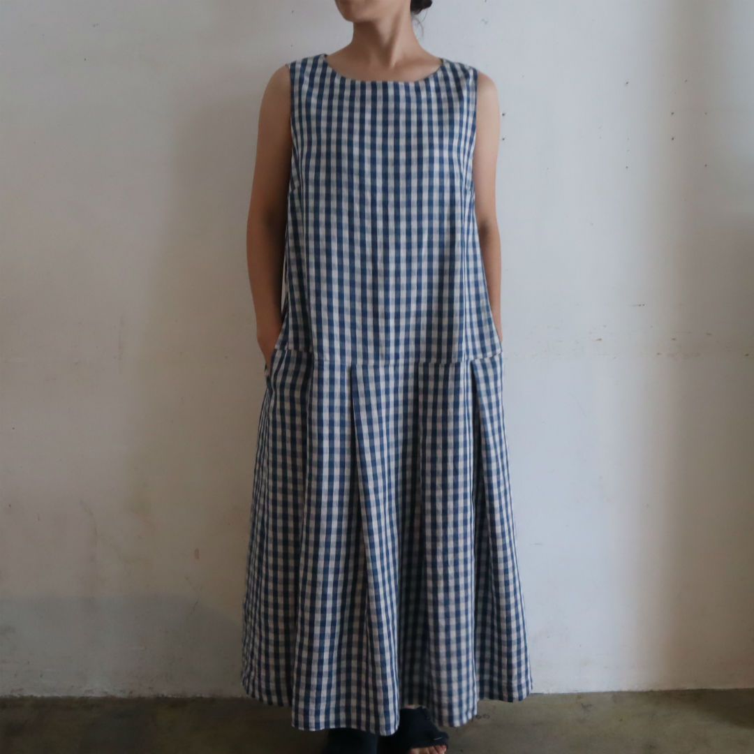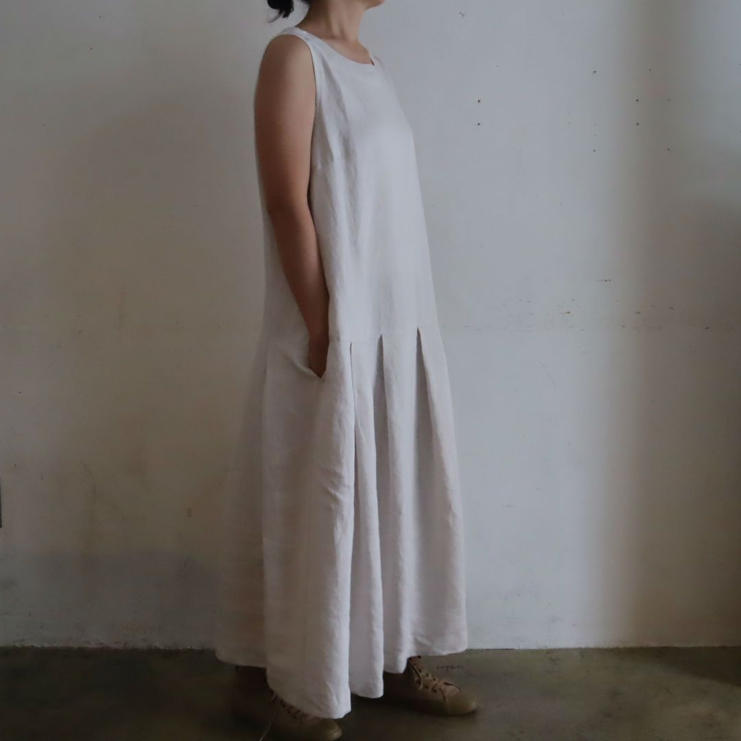 リネンバードオリジナルのパターン、ローウエスト切替のワンピース。