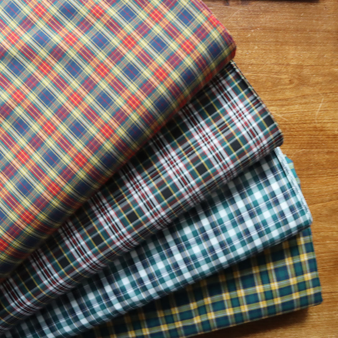 90年代に英国でプリントされていたヤーンダイ・タナローンをヒントに、2019年エターナル・コレクションの為に新しいチェックへとアレンジされています。従来のタナローンと同じ糸番手を使用した先染めチェックです。