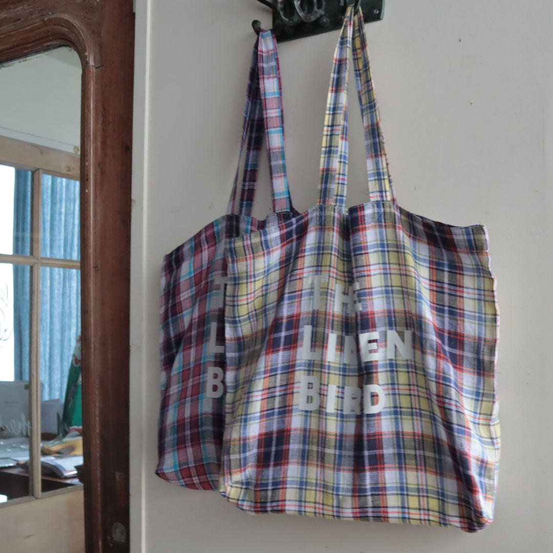 バッグにはマドラスチェックに映える「THE LINENBIRD」のロゴが真ん中に。シンプルですがアクセントになるデザインです。サブバッグとしても、メインのバッグとしてもコーディネートのアクセントとしてすすんで持ちたくなります。