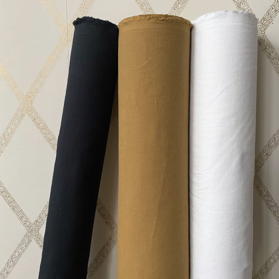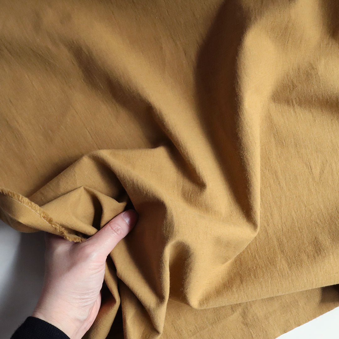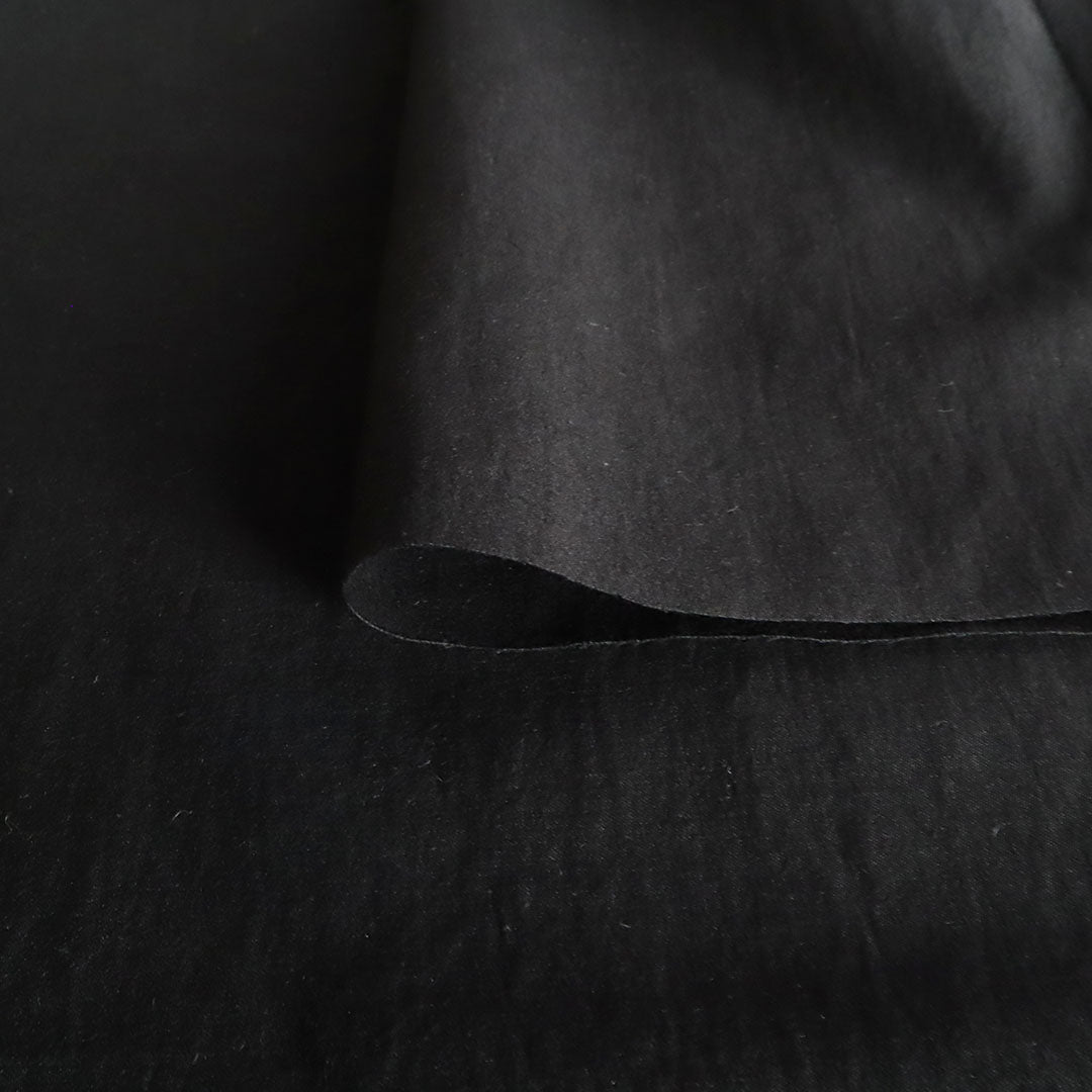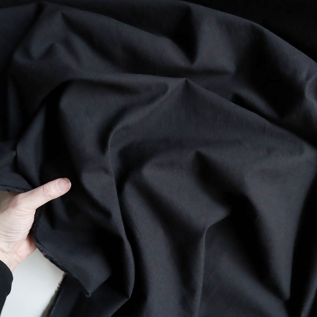コットンリネンバックサテンはコットンとリネンの糸を高密度に織り上げた生地。裏側がサテン織り(裏朱子織り)になっているのでさらりとすべりがよく、パンツやジャケットなどのアウターやバッグなどの小物にもおすすめ。