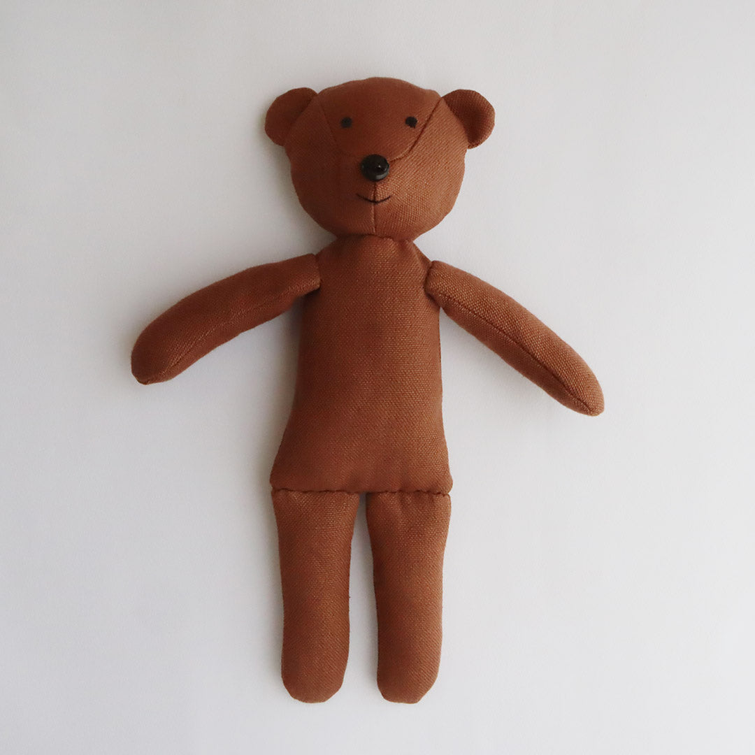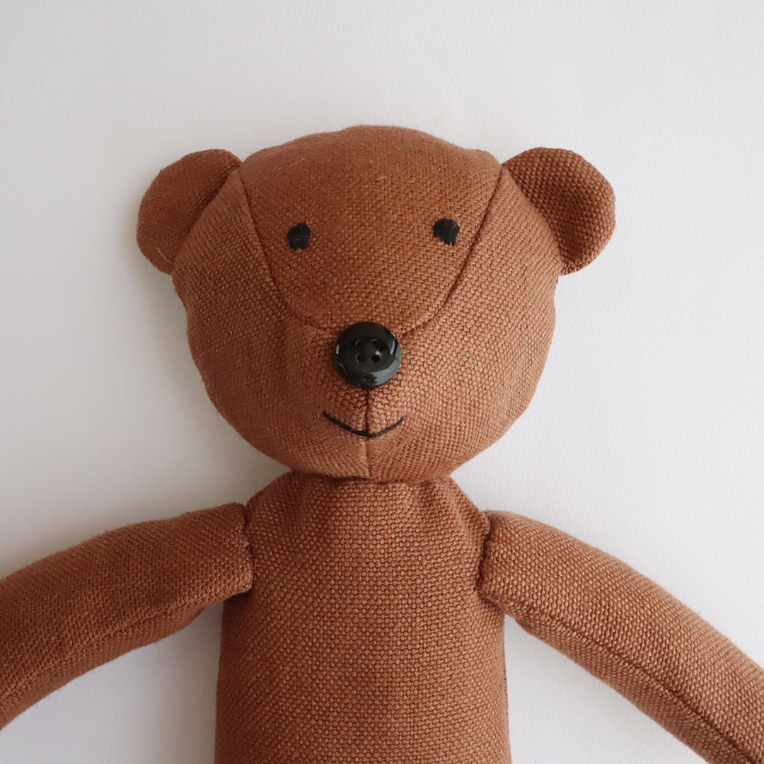 ぬいぐるみの生地は、ベルギーLIBECO社のリネンを使用。ひとつひとつ国内で丁寧につくりあげました。リネンならではの肌触りのよさでおもわず抱きしめたくなります。