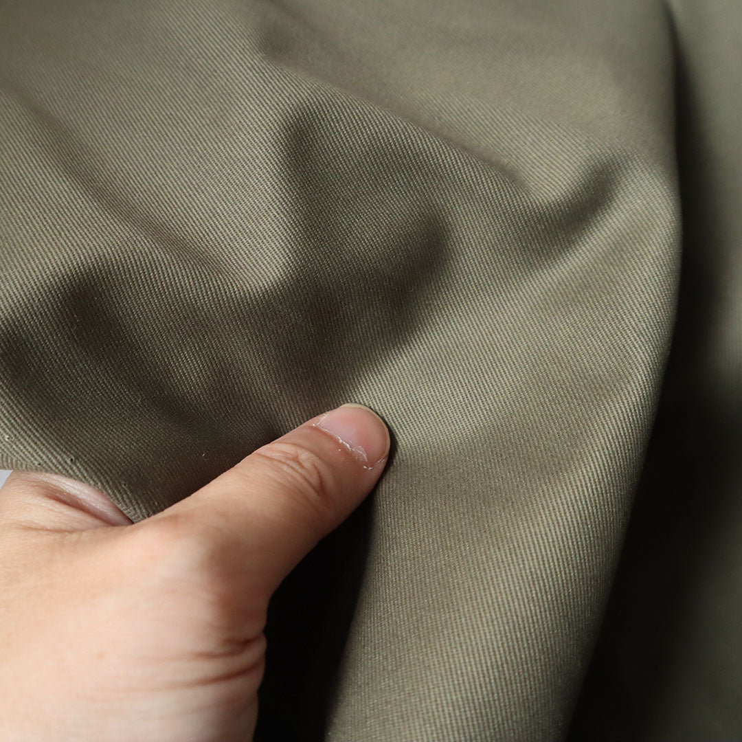 パンツやジャケットなどのアウターにおすすめのコットンツイル。しっかりとした厚みがあり、しわになりにくくなめらかな生地感です。