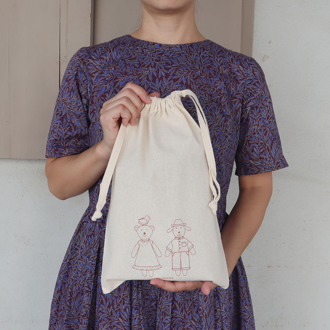材料セットはクゥクゥとフラクシィが描かれたオリジナルの巾着に入れてお届けします。